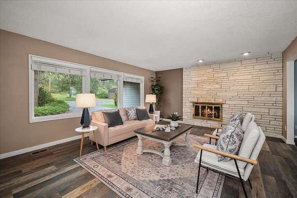 Nestled on over 3 acres in the Rimrock area near Palisades Park, this estate offers a blend of country freedom and city convenience. Enjoy glimpses of the downtown Spokane skyline and Mt. Spokane through the pines-a serene backdrop just 10 minutes from downtown and 7 minutes from the airport. The expansive 4-bedroom, 3-bathroom home features three distinct family rooms, luxury vinyl flooring, and updated bathrooms with radiant heated floors. Designed for self-sufficiency, a rare walk-in freezer and dedicated food storage room make this a homesteader's dream. The property is fully equipped for hobbies or livestock, boasting a 3-car attached garage plus a massive barn with three horse stalls and space for four additional vehicles. Cultivate your own produce in the rich-soil garden and mature fruit orchard. Maintained with a high-efficiency Trane heat pump and vinyl windows, this mini-farm provides a quiet, rural lifestyle without sacrificing proximity to the heart of the city.