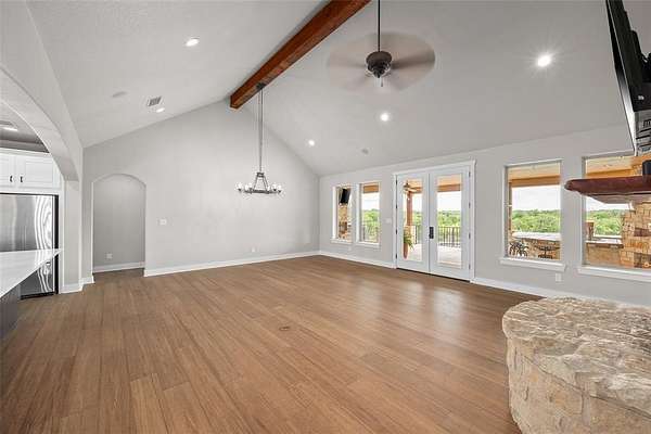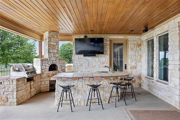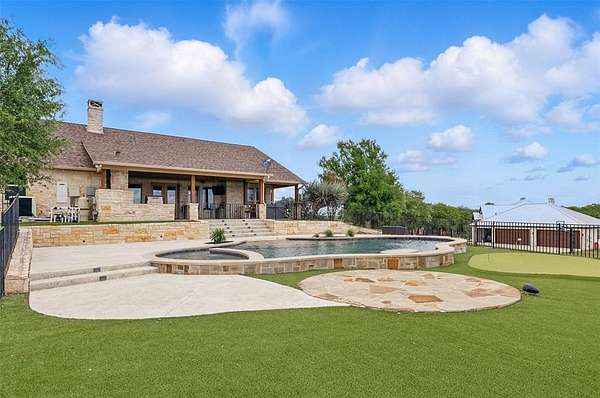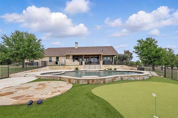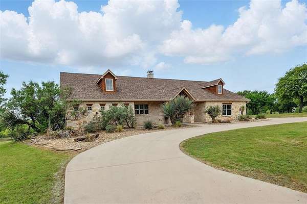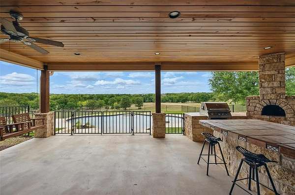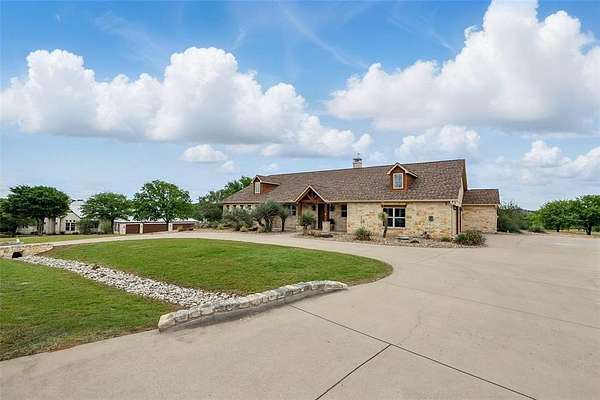 You will feel at home in this warm and inviting NEWLY REMODELED Austin stone home on 3 acres in highly sought after BROCK ISD and Sugartree on the Brazos Golf Course. The 4 bed, 4 bath custom home has a spacious open living area with a stunning stone fireplace and an entertainer's kitchen complete with a gas cooktop, double ovens, built-in wine cooler and a large island that opens up to the living and dining area. The home has wonderful use of space and an abundance of storage. The backyard oasis includes a pool with a kiddie area, a tanning deck, and a table and seating in the pool. A half-acre area is turfed and fenced by the pool, with a fire pit and a putting green. It doesn't stop there, this magnificent property has an outdoor kitchen equipped with a built-in grill, refrigerator, sink area and a stone pizza oven. Spanish tile outlines the island on the huge covered patio. This showstopper property sits on top of a hill and has one of the best views in all of Sugartree!
