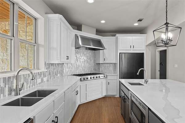 - Cooktop, Dishwasher, Double Oven, Garbage Disposer, Gas Cooktop, Microwave, Refrigerator, Washer