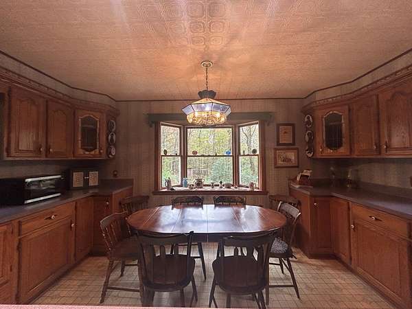 Right in the heart of the PA Grand Canyon Countryside! Situated on 5 acres of mostly wooded ground, this 2-bedroom home has plenty to offer as a permanent residence or a vacation/hunting retreat. Large kitchen with a bay window overlooking the woods and yard. Plenty of cupboards and counter space as well as a small desk/work area built in. Separate formal dining room and a bonus baking kitchen! Enjoy the enclosed sunroom in year-round comfort or retire to the huge Livingroom with a massive and unique fireplace hearth and mantel with built ins. First floor also includes a family room area and full bath. Both bedrooms are located on the second floor. There is also more storage space on the second level in the attic area. Partial basement with concrete floor, workshop and a storage room. Detached one car garage. Private location on a low traffic road just minutes to downtown Wellsboro. Less than 1 mile from the Tioga State Forest and 3 miles to the Pennsylvania Grand Canyon!