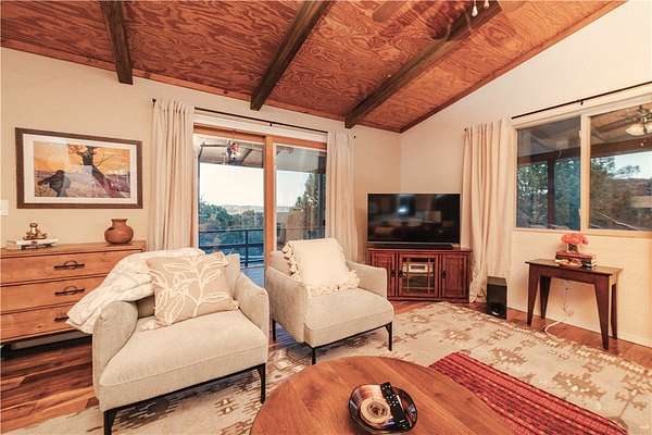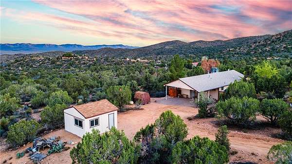Your mountain-view, fully furnished retreat awaits your company! Nestled on 9 peaceful acres, this turn-key sanctuary blends rustic elegance with modern comfort. Vaulted beam ceilings, rich wood tones & a cozy wood stove set the stage for warmth & relaxation. Step outside to endless skies, fruit trees & tranquil fish pond perfect for sunrise coffee or starlit nights. Area around home fully fenced for your fur-family, with workshop & storage shed for hobbies & gear. Ample RV parking. Installed internet connection conveys just add service! Expansive decks open to breathtaking desert vistas where silence, nature & crisp clean air embrace you in perfect harmony. Experience peace, comfort & pure Arizona magic in every moment. Discover the Charm of Hackberry, Arizona! and a touch of Americana? Hackberry offers a rare blend of desert beauty, rich history, and small-town charm. Nestled along historic Route 66, this quiet community is perfect for those seeking a slower pace, stunning sunsets, and wide-open skies. With its vintage vibe, friendly neighbors, and proximity to Kingman and Grand Canyon attractions, Hackberry is more than a place to visit it's a place to call home. Escape the noise and embrace the magic of desert living in Hackberry!