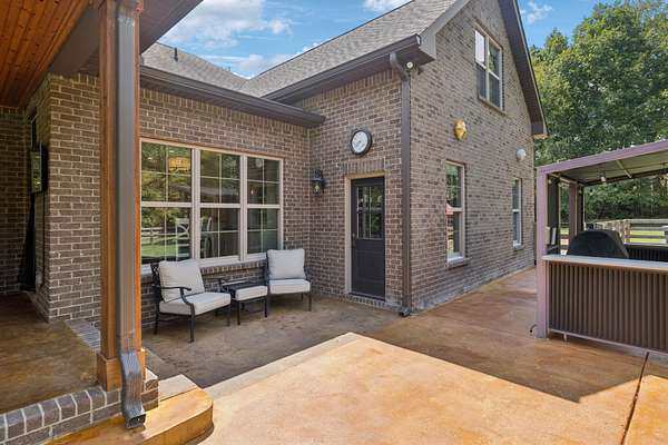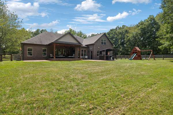 Experience refined country living at this stunning 12+ acre gated estate near Fairview's vibrant core. The elegant brick home blends timeless charm with modern convenience, offering a luxurious, serene retreat. The gourmet kitchen with modern appliances opens to a spacious great room. The main-level primary suite features a spa-like en-suite bathroom including an air bathtub and large walk-in closet. Two additional main-level bedrooms, each with private en-suite bathrooms and walk-in closets, ensure privacy. A sophisticated library, formal dining room, hardwood floors, and crown molding add warmth and elegance. App-controlled Sonos surround sound across seven zones and elegant lighting enhance the experience. Upstairs, a spacious media/recreation room, a large bedroom with a walk-in closet, and a full bathroom offer flexibility. A large walk-in attic provides ample storage. The highly versatile acreage is ideal for outdoor enthusiasts, featuring a lush pasture, serene forest, new greenhouse, woodshed, machine shed with lean-to, and a deluxe chicken coop with 12 nesting boxes, electricity, Wi-Fi, and water. A blueberry patch and 30' irrigated raised flower bed cater to gardeners. The fenced, irrigated backyard includes a play structure, custom patios, a BBQ pavilion, and space for a future spa. High-speed fiber internet supports remote work, and a below-ground storm shelter ensures safety. Separate utilities allow for farm use or a potential secondary residence. Enjoy abundant wildlife, serene privacy, and nearby amenities. The solar-powered gate with remote Wi-Fi and camera, along with city water, sewer, and natural gas, adds convenience. This Fairview estate combines rural charm, modern luxury, and timeless sophistication for discerning buyers. Step into your dream home today!