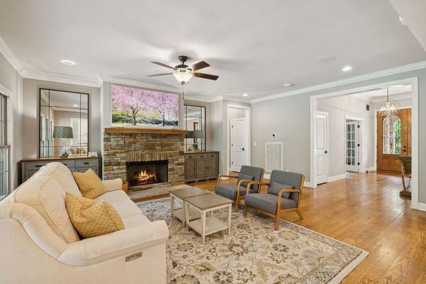 Refined country living meets modern luxury on this stunning, nearly level, 12+ acre gated estate in Fairview. An entertainers dream home. The elegant brick home features a gourmet kitchen (gorgeous new lighting in a few photos) flowing into a spacious great room. Three main-level en-suite bedrooms; a spacious and private primary suite with a spa-like feel and huge walk-in closet, plus two additional en-suite bedrooms on the opposite side of the home. A library, formal dining room, and timeless details like hardwood floors and crown molding add sophistication. Rainsoft whole-home water filtration system with extra triple-filtered drinking water at the kitchen sink and refrigerator for superior purity and great taste.