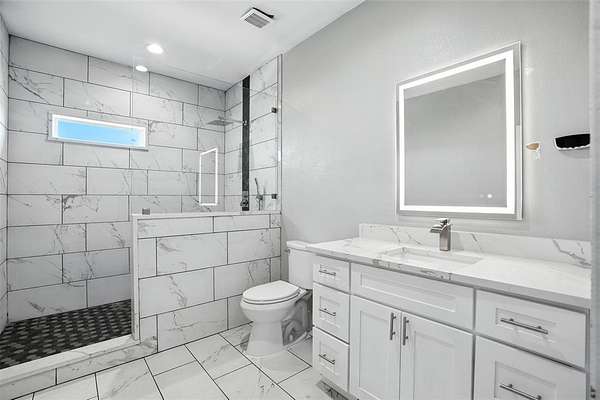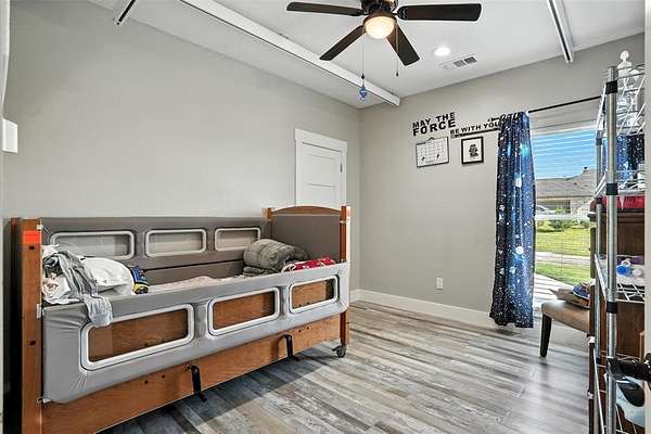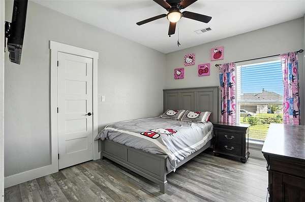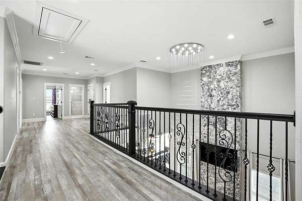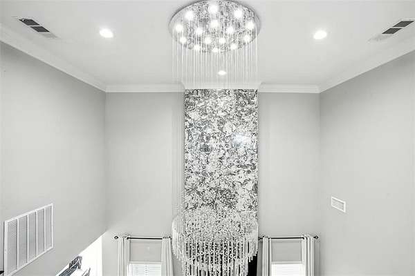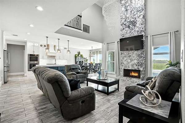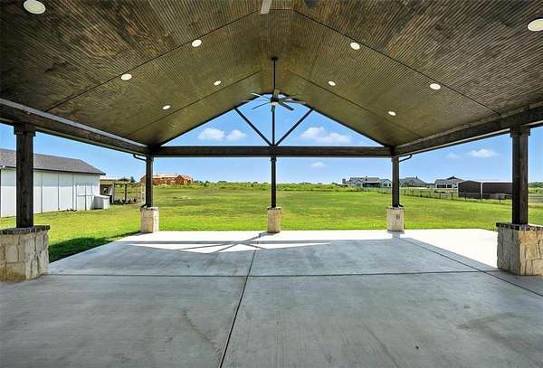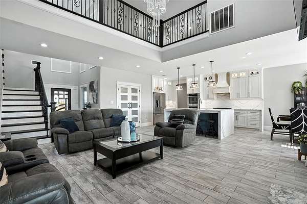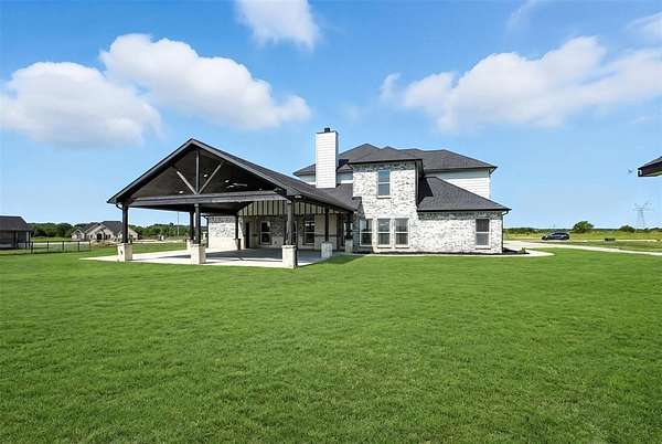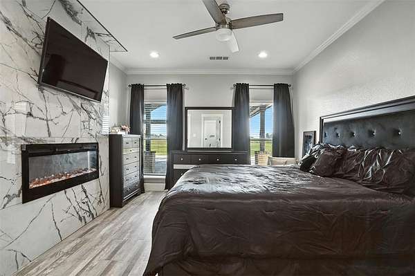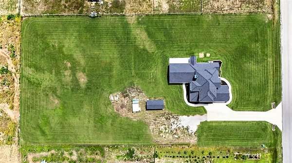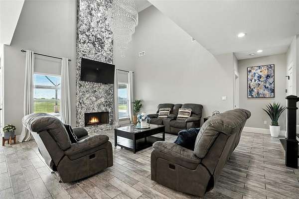 Experience luxury living on 2 acres in this beautifully designed 6-bedroom, 5.5-bathroom custom home. With a thoughtful layout and high-end finishes, this property blends elegance with functionality for everyday living. All bedrooms feature walk-in closets and recessed lighting, while the oversized garage, safe room, and hidden master suite room provide both convenience and peace of mind. The grand entry welcomes you with soaring ceilings and a designer chandelier, leading into a designated office and open-concept living spaces. The chef's kitchen is highlighted by premium Cambria quartz countertops, propane gas cooktop, modern cabinetry, and ample prep space. It flows seamlessly into the living room where a dramatic floor-to-ceiling fireplace and sparkling chandelier create a true showpiece. The primary suite is a private retreat, complete with a hidden room and spa-style bath featuring a jetted Jacuzzi tub, Japanese toilet with bidet, and smart LED mirrors with integrated lighting and exhaust. Each additional bathroom also includes quartz counters and smart mirrors for a consistent modern touch. Designed with convenience in mind, this home includes two laundry rooms, one upstairs and one downstairs ideal for large or multigenerational living. The oversized garage offers plenty of space for vehicles, storage, or hobbies, while the safe room provides extra security and peace of mind. Outdoor living is unmatched with a massive 1,560 sq. ft. covered patio perfect for entertaining, dining, or relaxing. With 2 acres of open space, the property allows plenty of room to customize with a pool, workshop, or garden while enjoying the peace of country living. Additional highlights include elegant chandeliers in the entry and living room, designer flooring throughout, and abundant natural light. This property combines luxury, functionality, and space, offering an exceptional opportunity to enjoy upscale country living just minutes from city amenities, shopping, and schools.