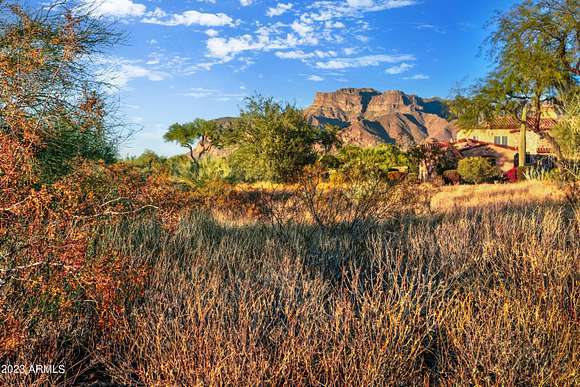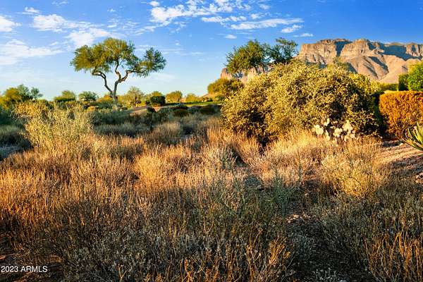 LOWEST PRICE LOT IN SUPERSTITION MOUNTAIN! CUSTOM HOMESITE. NO TIMEFRAME TO BUILD. PARTIAL PLANS AVAILABLE. TWO JACK NICKLAUS GOLF COURSES. GORGEOUS CLUB HOUSE. NOT A GOLFER? MANY OTHER AMENITIES TO ENJOY - PICKLE BALL, TENNIS, BOCCE, HIKING. COUNTRY CLUB LIVING AT IT'S BEST. PRIVATE GATED COMMUNITY. THIRTY FIVE MINUTES TO SKY HARBOR AND 20 MINUTES TO MESA GATEWAY AIRPORTS. PLANS AVAILABLE FOR AN ADDITIONAL COST. BUYER AND/OR BUYER'S AGENT TO VERIFY ALL PERTINENT INFORMATION. CLUB AMENITIES UNDER A SEPARATE AGREEMENT. PLAT PLANS ARE INCLUDED IN THE DOCUMENT SECTION.