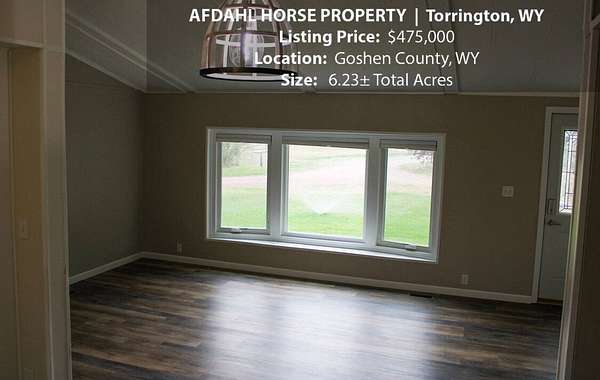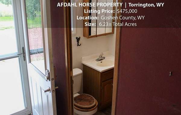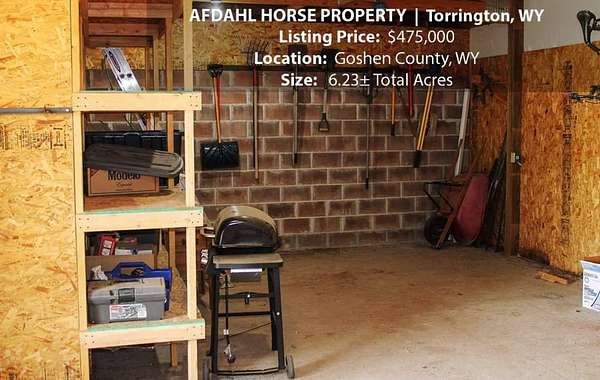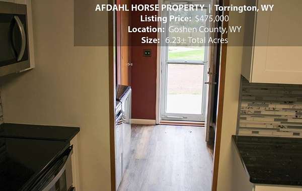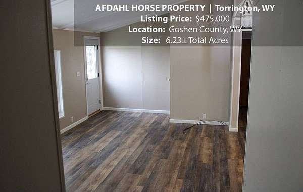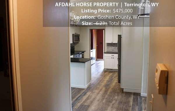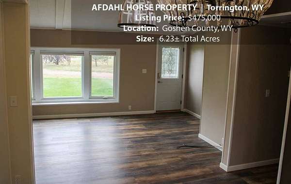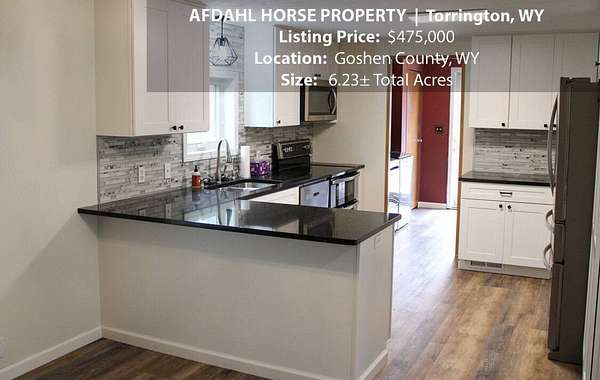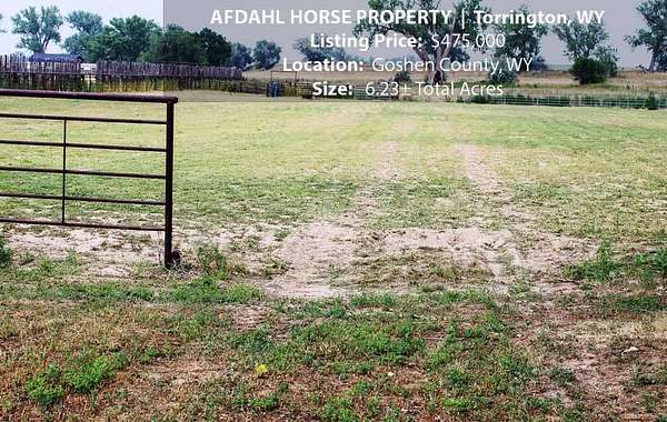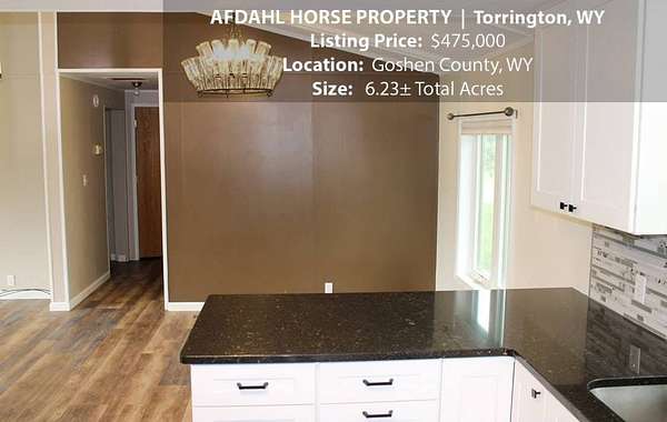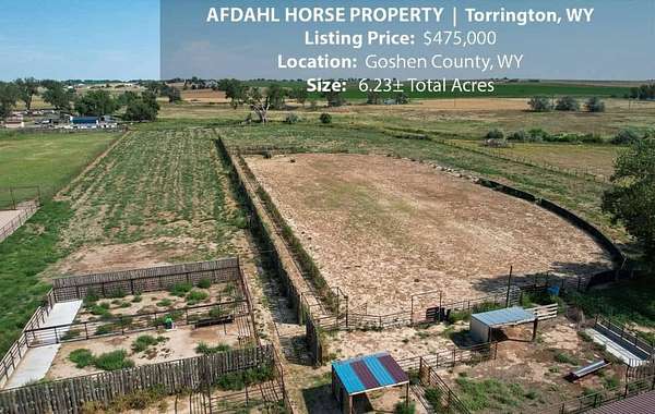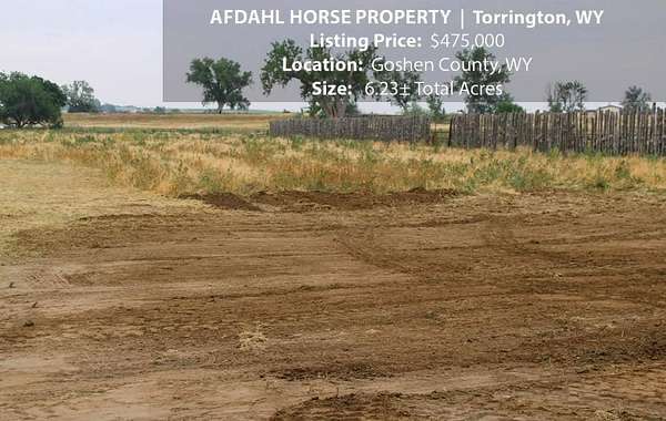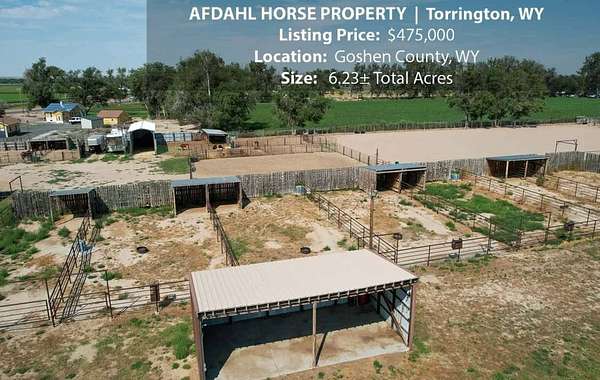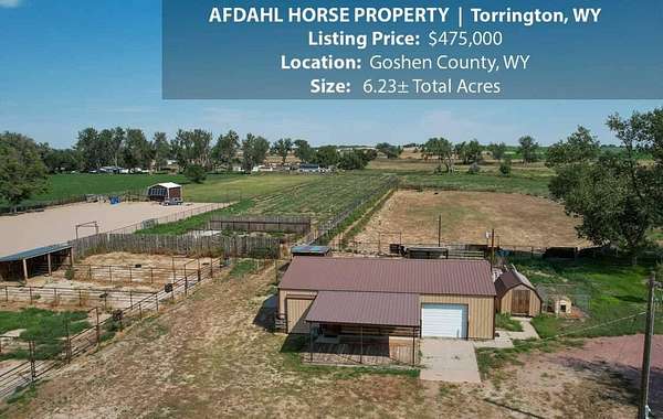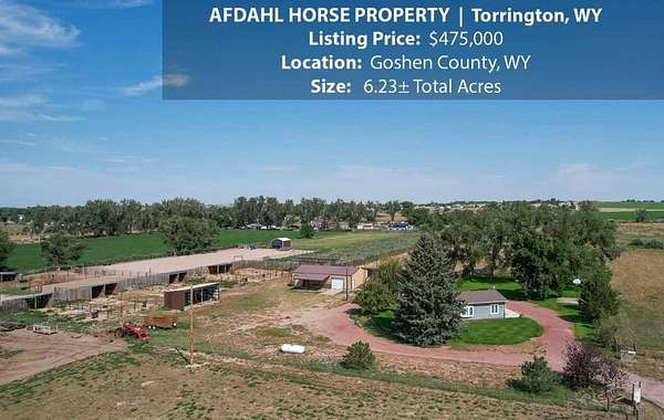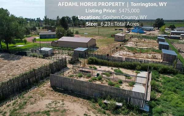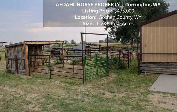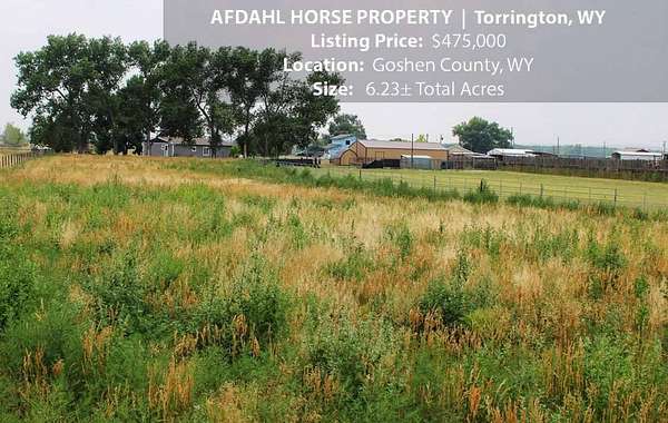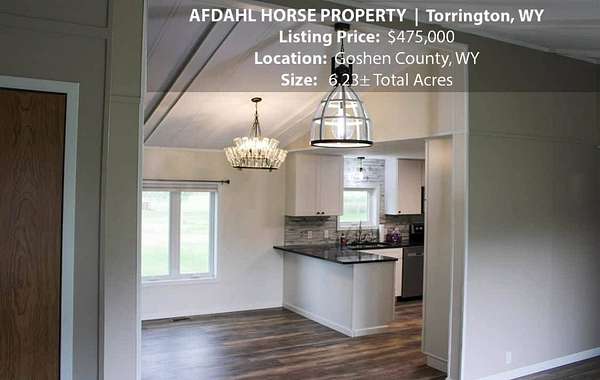 Located just west of Torrington, Wyoming and with great access off of US Highway 26/85 is the Afdahl Horse Property. Situated on 6.23+- acres, this property has everything that the horse lover could need. The 1984 modular home offers 3 bedrooms and 2 full bathrooms and has had numerous recent upgrades including a completely remodeled kitchen and new flooring throughout. The exterior of the home offers an underground sprinkler system and is enhanced by the mature landscaping around the yard. The 1440 sq. ft. shop/barn is divided nicely into shop space that offers ample room to park a vehicle and a tack storage area with a built-in saddle rack and tack hangers. There is also covered tie-out area and an enclosed lean-to for additional storage. This property is ready to bring the horses and roping cattle and is set up with 7 horse runs that are all pipe construction and with loafing sheds and water to all of the runs. Additional pens have been built for livestock including 2 steer pens that have cement feed bunks with a second pen for the calves. A 130X300 roping arena, 450 sq. ft. of covered hay storage, and fenced grazing acreage with water rights round out the improvements.