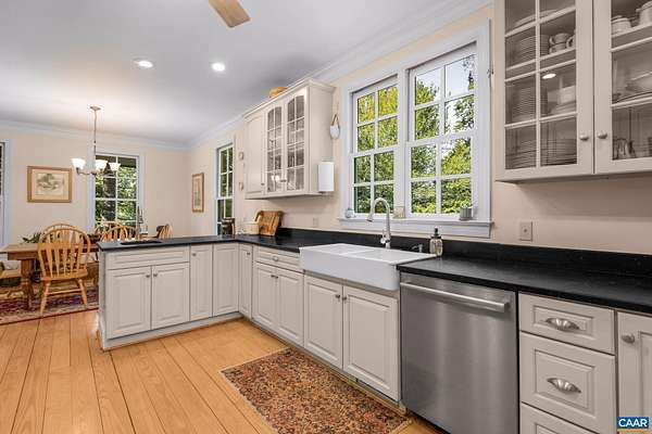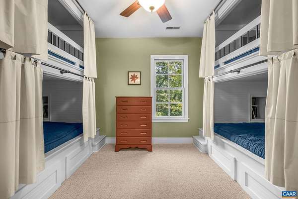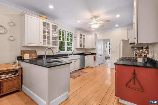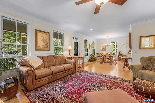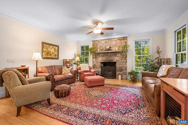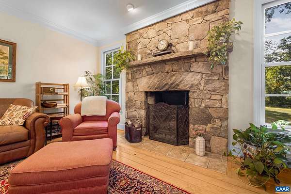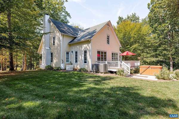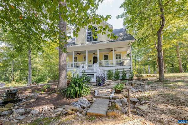 CHESMONT is an inviting country retreat, 18 miles south of Charlottesville, in the quiet hamlet of Esmont. The property blends rural charm with surprising versatility. The main residence offers generous living space anchored by a bright open-concept kitchen/dining/living area - perfect for gathering. A first-floor primary suite provides convenience, while the sun-filled first-floor Office invites creativity. Upstairs you'll discover bedrooms and a family room with four built-in bunkbeds, plus a hidden play nook disguised as a closet, making the home especially fun for young visitors. Front and back porches offer extra living space in shade or sun. Terrace level includes a workshop and sewing room, ideal for hands-on projects and hobbies. Beyond the home, the Cottage with Garage creates flexible space for guests, extended family, or rental income. A substantial Barn (C: 2022) and chicken coop add to the property's utility, while the current owners' craftsmanship shines through in a stacked-stone water feature, fire pit, and multiple gathering spots around the grounds. With room to breathe, space to create, and thoughtful touches throughout, "Chesmont" is more than a property - it's a lifestyle. Come see what all the fuss is about!