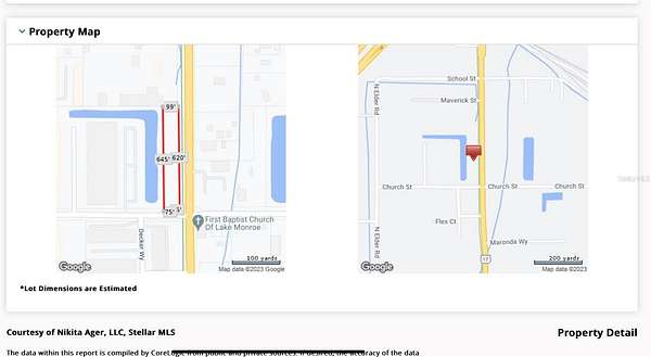 I-4 to Sanford exit 101BC to SR 46. Head east .09 miles to Monroe st /17-92. Head north .07 miles and property is on the left. Corner of Monroe/19-92 and Church Street
