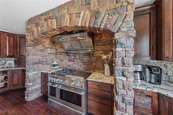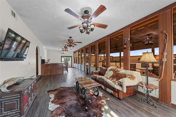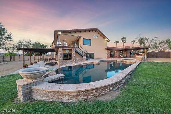 Welcome home to this impressive 4.88 acre property hidden away but not far away~ Fantastic CITY & MOUNTAIN VIEWS ~ A secluded estate offering endless opportunities ~ This stunning property can be income producing, subdivided for future development or simply owned as your prestigious home ~ Enter through your private gates & around the beautifully paved circular drive to your remarkable stone-exterior home with over 4500sq ft of living space, pool/spa, 10 car garage, RV parking, workshop, storage, 11 equine stalls, 2 foaling stalls, tack room, restroom, a well-lit massive arena & pasture ~ Uniquely arched wooden front door opens to a spacious kitchen, dining & family room ~ Large living room ~ Two primary bedrooms, one of which could be converted into two bedrooms ~ Spacious guest bedroom w/views of the pool ~ Large 4th room is detached for the perfect den/office/gym~ Laundry room designed for two washers & two dryer hookups ~ Outdoors space awaits all your entertaining!