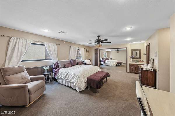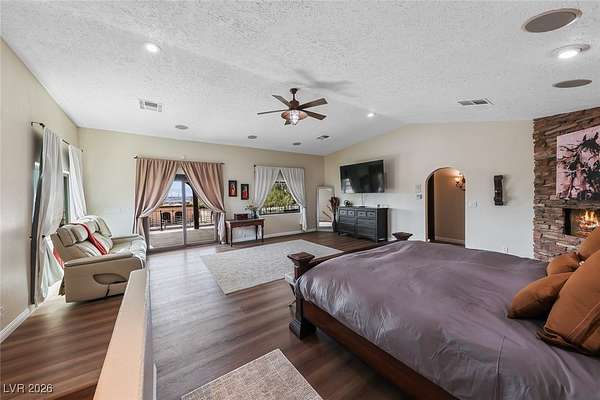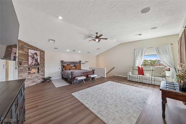- Bedroom On Main Level, Ceiling Fans, Fireplace, Primary Downstairs, Window Treatments