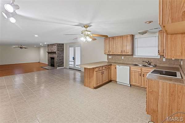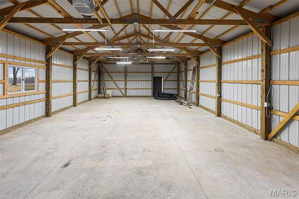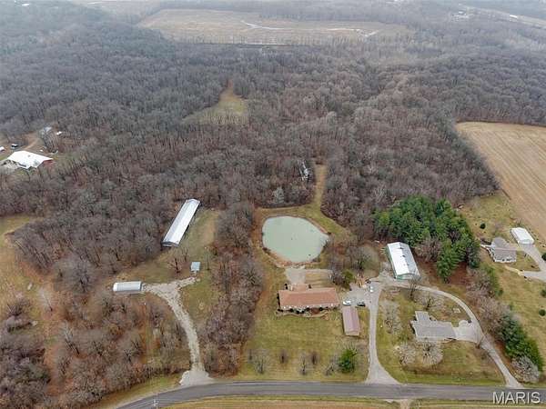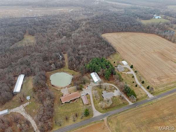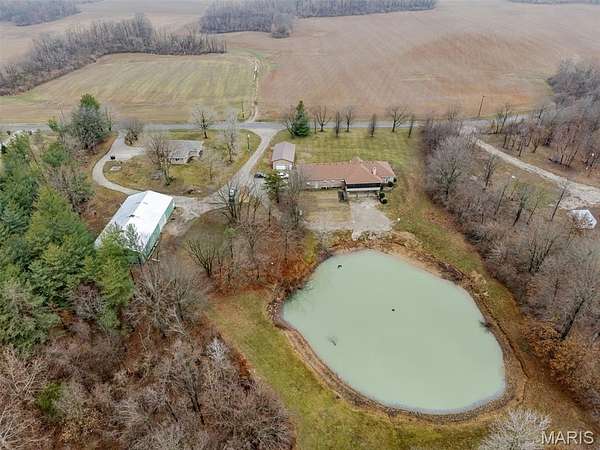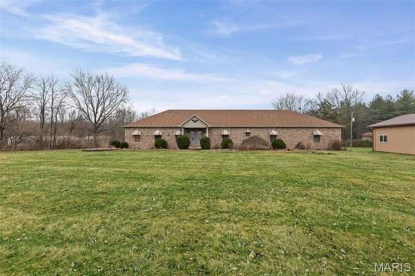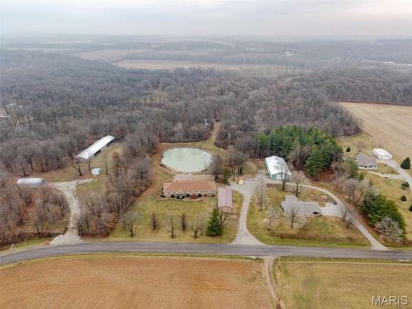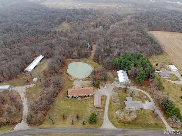 FABULOUS FULL BRICK RANCH has 5 bedrooms & 4 full baths. This stunner has nearly 5000 total sf and is situated on 8 wooded acres with a stocked pond. Open concept floor plan includes Great Room w/wood burning fireplace, dining area. kitchen with extra bank of upper & lower cabinets and loads of counter space. HUGE walk-in pantry with plenty of shelving. Main floor laundry/mud room combo. Full bath too. AMAZING PRIMARY SUITE features large walk-in closet. Primary bath has tub with separate shower. Atrium Door in bathroom leads to 36 x 12 balcony. Two additional guest rooms and full bath round out main floor living space. 45 x 12 SCREENED Porch off the Great Room affords endless hours of relaxation looking out over the pond & wooded area. AWESOME family/rec room w/wood burning fireplace in lower level.. FULLY FINISHED walk-out has second kitchen w/stove & dishwasher. Lots of cabinets & counter space here too. Fourth & fifth generously sized bedrooms. Full bath. MASSIVE storage room with built-in shelving. Architectural shingle roof replaced 2025. New geothermal HVAC replaced by Ernst in 2024. Basement wall in storage room waterproofed by Woods Waterproofing. Three car attached oversized garage w/utility sink and openers. Central vacuum. NEARLY NEW BARN (2022) is 48 x 25 with concrete floor & opener. LARGE storage shed too. Generator with propane gas supply. Information herein deemed reliable but should be verified prior to making an offer. ESTATE SALE. SELLING AS-IS.