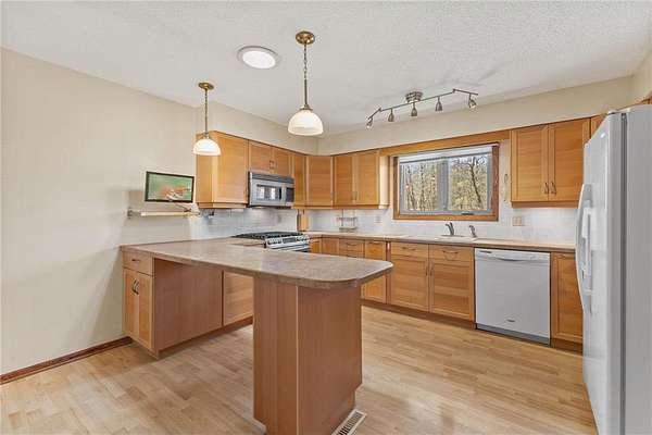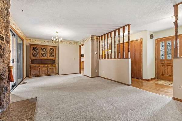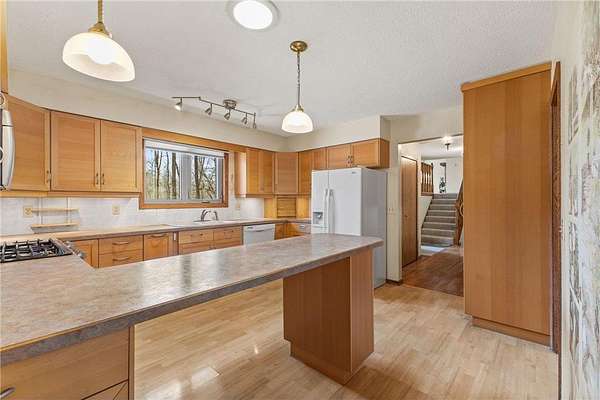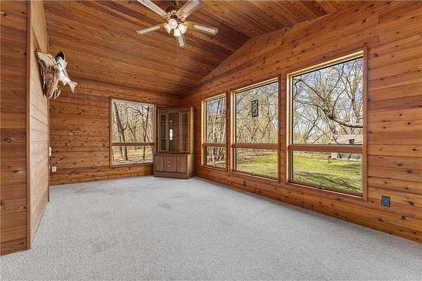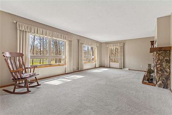 Nestled on 2.2 acres of beautiful, private land, this inviting home offers the peaceful country setting you’ve been searching for. From the moment you arrive, you’ll appreciate the serene surroundings, complemented by a new roof and attractive steel siding that enhance both durability and curb appeal. Step inside to discover a spacious kitchen that flows seamlessly into a warm and welcoming dining and living area, complete with a cozy wood-burning fireplace—perfect for gathering on cooler evenings. The charming 3-season porch provides an ideal space to relax with your morning coffee or unwind while taking in stunning sunset views. Upstairs, you’ll find an expansive living room along with a generous primary suite featuring his-and-hers closets, plus an additional bedroom. The lower level offers three more spacious bedrooms and a full bathroom, providing plenty of room for family, guests, or the opportunity to customize the space to your needs. The attached two-car garage adds everyday convenience, while the outdoor amenities truly set this property apart. Out back, you’ll find two separate three-car garages. One includes a finished and heated stall—perfect for a workshop or year-round projects—while the remaining stalls offer excellent potential for finishing. The second garage provides ample space for storing lawn equipment, recreational vehicles, or all your outdoor toys. The whole house runs on eco friendly and cost saving geothermal heating and cooling and has new windows throughout! With space, privacy, and versatile features throughout, this property delivers the best of comfortable country living. Don’t miss your chance to make it yours!