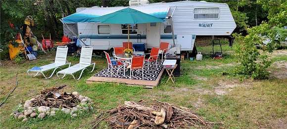 Welcome to your private oasis on Town Line Lake! Crystal clear waters, offering 200 feet of sandy shoreline. Nestled in a dense forest, this east-facing lot promises breathtaking sunrises and cool, shaded afternoons under towering trees. Completely secluded and surrounded by lush woods, ensuring tranquility and exclusivity. Ideal for duck hunting enthusiasts with excellent opportunities right at your doorstep. Adjacent to miles of scenic trails for hiking, biking, and exploring nature. A well-maintained camper is included, allowing immediate enjoyment while planning your dream home. Use as a permanent residence or as a serene retreat until you build your custom lakefront getaway. Whether you're seeking a permanent escape or a weekend retreat, this exceptional property offers unmatched privacy, natural beauty, and endless recreational opportunities. Don't miss your chance to own this piece of lakeside paradise!