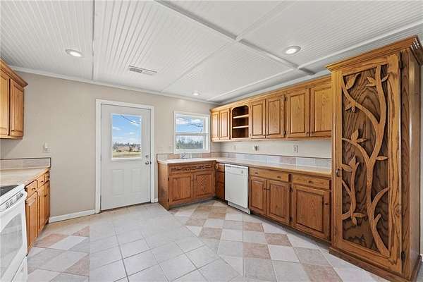 Beautiful farm house in the perfect location, with 7.8 M/L acres, is perfect for a hobby farm or large garden. This is a dream country home, nestled in a beautiful area with abundant wildlife and stunning sunrise's and sunset's. There is a small pond and lots of road frontage, a large front yard and great view of the countryside looking to the southeast. 2nd family room with a playroom or could be a 5th bedroom added off kitchen and dining room. Great room with a large all brick fireplace, with a woodburning fireplace insert. The primary bedroom, located on the main level, features a large walk-in closet. Laundry room is located on the main level as well, no stairs to do laundry. A very unique historical root cellar, that was built in 1917 off the large, shaded back patio. Custom carved stained kitchen cabinets, with all the kitchen appliances already in place makes this kitchen a cooks dream. This house offers lots of space for a family with room to grow. This home is vacant, and ready to move in. The Seller is offering $3,000 towards flooring of your choice, this is an awesome opportunity to pick your own flooring and make this house your next home! This house also has new windows. Come check out this beautiful home, perfect for a getaway or getting back to the country living. Property is very near a Verizon tower with excellent service, internet, and home WIFI abilities.