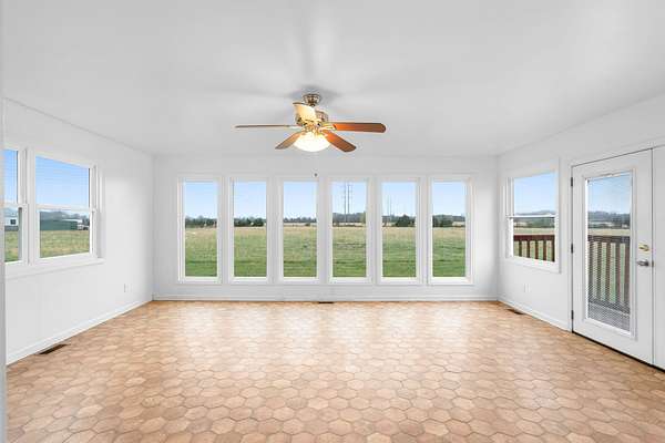 Inside, the home offers comfortable living spaces filled with natural light, including a bright sunroom overlooking the property—perfect for relaxing and taking in the quiet countryside setting.