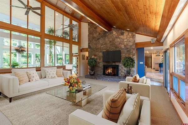 Cathy Craig, Durango Land and Homes, C: 970-749-3986, cmcraig57@gmail.com, www.crenmls.com: Experience an extraordinary opportunity to own a truly one-of-a-kind ranchette in the heart of Southwest Colorado. Encompassing over 54 acres across three separate legal parcels, this remarkable property offers exceptional versatility—ideal for a private family compound, legacy estate, or serene mountain retreat. Conveniently located just minutes from County Road 250, the residence is gracefully perched on a hillside, capturing unobstructed, panoramic views of the Animas Valley, Engineer Mountain, and the Needle Mountains.Thoughtfully designed and meticulously crafted, this mountain sanctuary is rich with natural beauty. Tranquil ponds, gentle water features, and secluded gathering spaces are woven throughout the landscape—perfect for morning coffee, quiet reflection, or evening entertaining. Every vantage point offers a picture-perfect backdrop, while the home itself is designed to fully embrace Colorado’s abundant sunshine, with dramatic floor-to-ceiling, south-facing windows that bathe the interiors in natural light.Spanning 4,887 square feet, the residence offers five bedrooms, four bathrooms, and a spacious office—providing both comfort and flexibility for full-time living or hosting guests. At the heart of the home, the chef’s kitchen is a standout, appointed with granite countertops, a large center island, a six-burner JennAir range with custom hood, Sub-Zero refrigerator, wine fridge, double pantries, and premium appliances throughout. The kitchen flows seamlessly into the dining and living areas, where expansive windows and direct access to the outdoor deck create an effortless indoor-outdoor lifestyle ideal for entertaining or simply enjoying the surrounding beauty.A light-filled “green room” offers a unique and inspiring space for gardening, relaxation, or bringing the outdoors in year-round. The main level also features a spacious primary suite, a well-appointed mudroom and laundry area, and access to an oversized two-car garage.Upstairs, a second primary suite with a private bath provides additional comfort and privacy, complemented by three additional bedrooms, two bathrooms, and a versatile den perfect for a home office, fitness space, or media room. Throughout the home, large windows frame the ever-changing landscape, creating a seamless connection to nature in every room.Designed with the outdoor enthusiast in mind, the property includes both an attached two-car garage and a detached garage, offering ample storage for recreational equipment, vehicles, or ranch needs. A short walk or drive leads to the lush valley below, where a peaceful pond and nearby stream create an idyllic setting. The pastureland is well-suited for horses, while elk and other wildlife frequently pass through, enhancing the sense of privacy and connection to the land.Each season brings its own breathtaking transformation—from snow-capped peaks in winter to golden aspens in fall, and vibrant wildflowers in the warmer months. With direct access to the National Forest via Missionary Ridge Road, adventure is quite literally at your doorstep, with routes leading to Henderson Lake and the renowned Weminuche Wilderness.This is a rare and irreplaceable offering—where refined living meets untamed Colorado beauty. A property of this caliber is seldom available. Schedule your private showing and experience it for yourself.