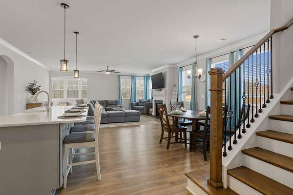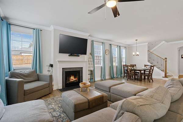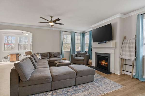 - Attic Stairs-Disappearing, Cable Available, Ceiling Fan, Ceilings-Smooth, Ceilings-Some 9 FT +, Countertops-Solid Surface, Fireplace, Garden Tub, Gas Logs, Open Floor Plan, Smoke Detector, Utility Sink, Walk in Closet, Walk-In Pantry, Window TRMNTS-Some Remain