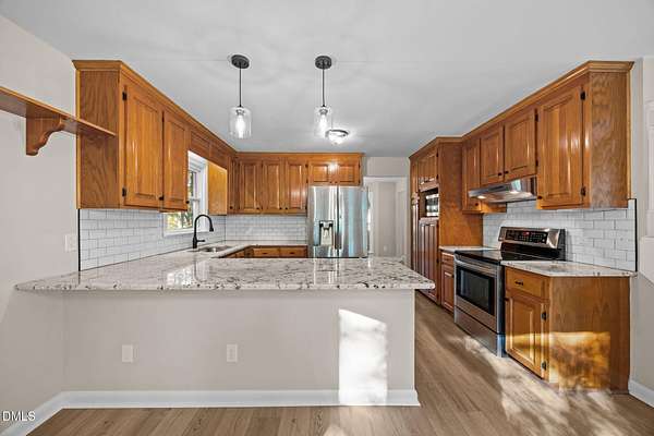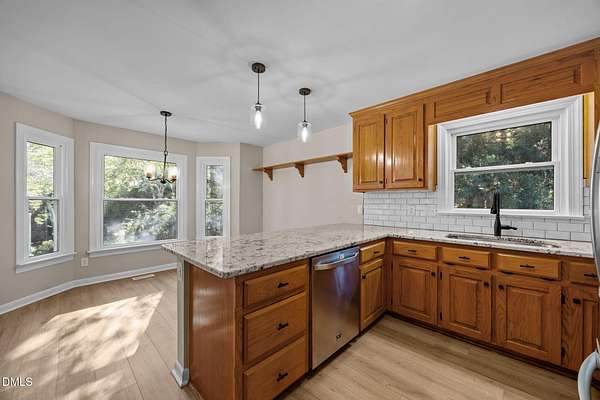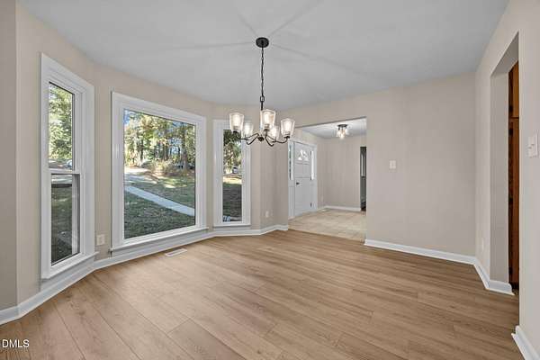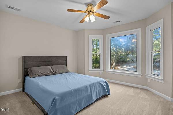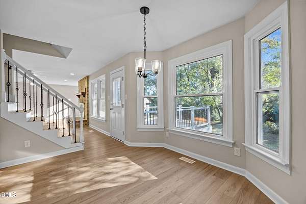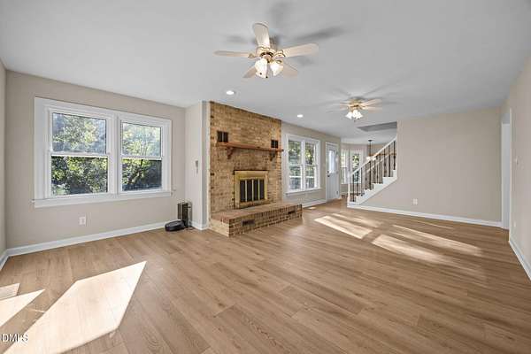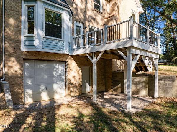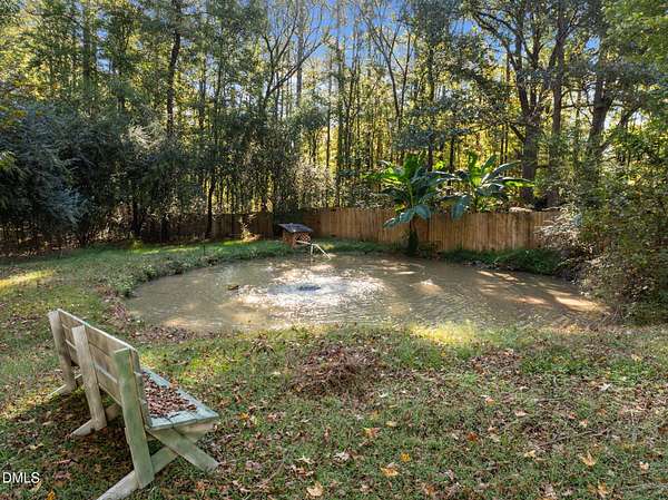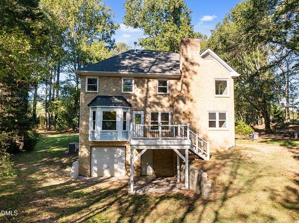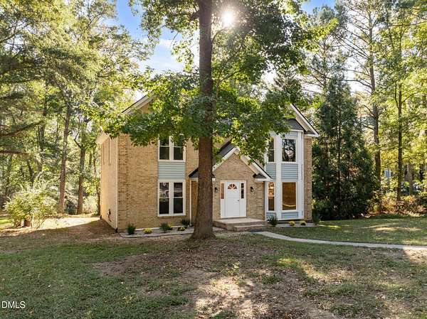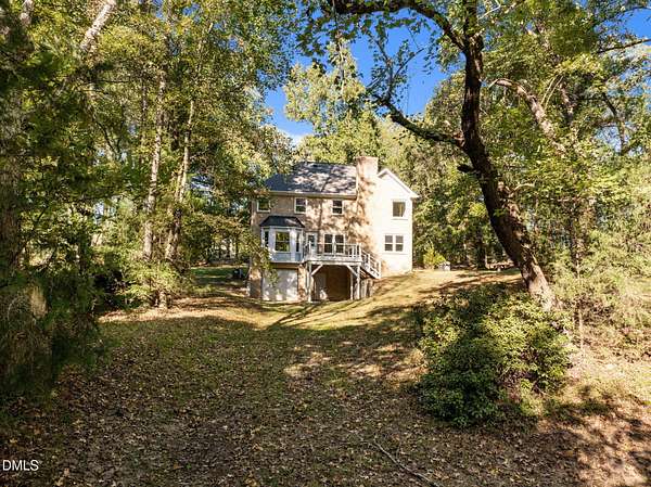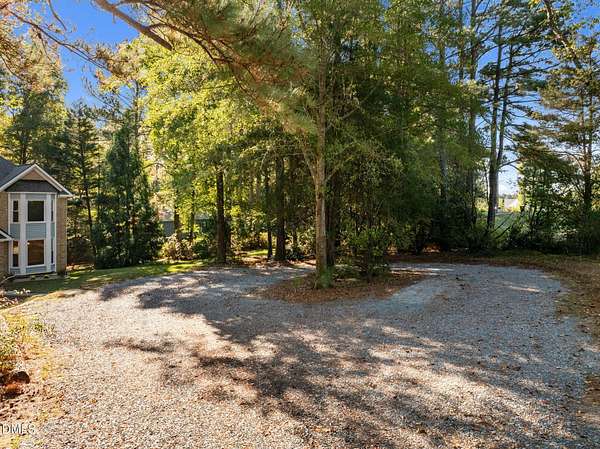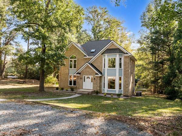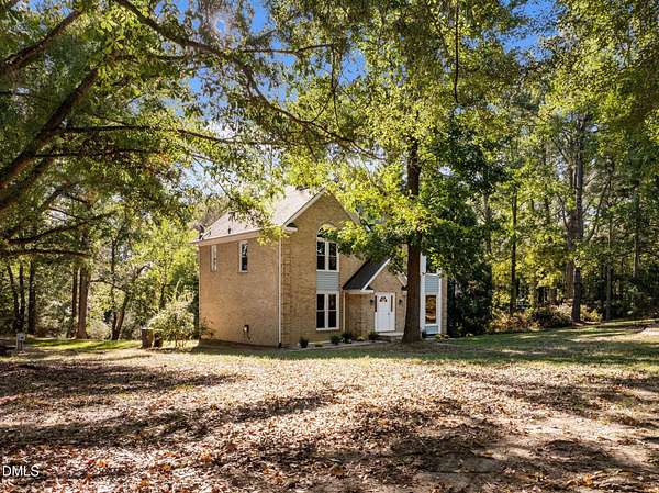 Established on over 2 serene acres, this impressive, custom built brick home perfectly blends comfort and convenience. The refreshed kitchen features granite countertops, updated appliances, and a peaceful view of the backyard and shared pond. A spacious dining room provides the ideal setting for gatherings, while the main-floor office offers a quiet space for productivity. Upstairs, you'll find a generous primary suite along with two well-sized secondary bedrooms and a flex room. The expansive, unfinished basement presents endless possibilities and includes a utility garage-perfect for an ATV, lawn equipment, or golf cart. With the American Tobacco Trail located directly behind the property, outdoor recreation and adventure await. Conveniently located near Apex, Cary, Durham, Raleigh and Chapel Hill, as well as Highway 540 and Highway 64, this home offers easy access to nearby amenities while maintaining a peaceful, private setting.