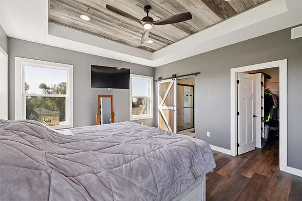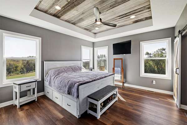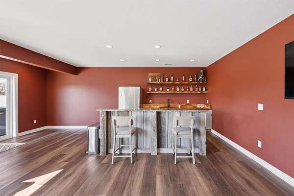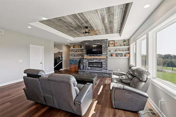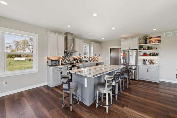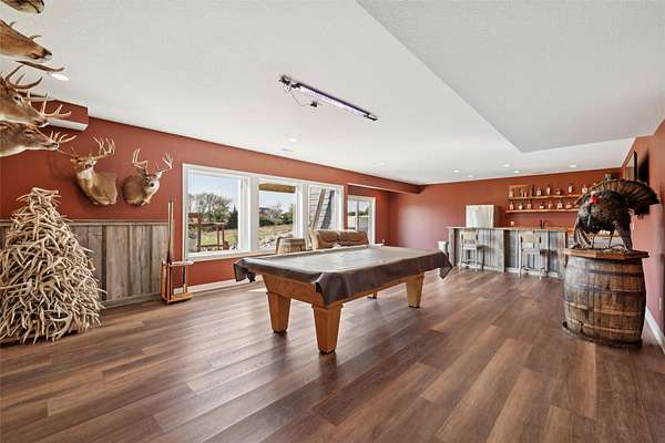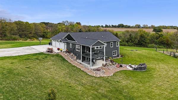 16.80 acres of timber, pasture, and established food plots offer exceptional privacy just south of Norwalk, Iowa. Built in 2022, this walkout ranch features 3,597 square feet of finished living space with 5 bedrooms and 3 bathrooms. The open and spacious kitchen flows into the main living area, while the finished basement includes a custom-built wet bar- perfect for entertaining. Outdoor living is a standout with a large covered deck, covered patio, additional open patio space, and a firepit overlooking scenic views of the surrounding countryside. A 3-car attached garage (1008 SQ FT) provides ample storage. This rare property offers the ideal combination of modern living and outdoor recreation, with abundant wildlife including deer, turkey, and pheasants right in your backyard. A hard-to-find opportunity at this price point, offering privacy, acreage, and a beautiful home in a natural setting.