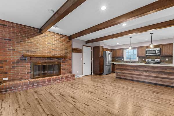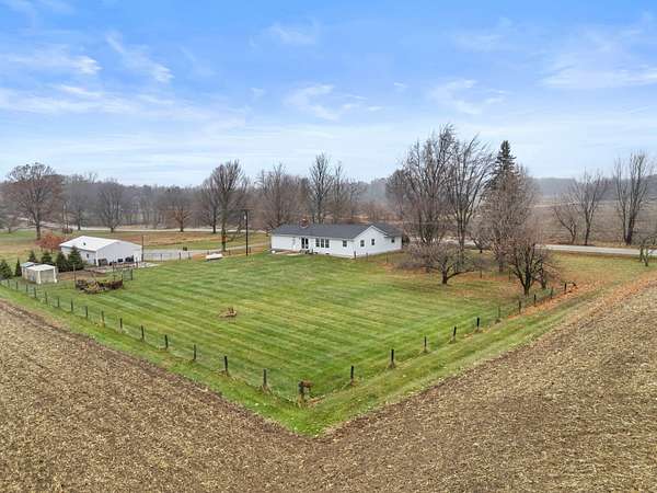 Welcome to your peaceful country retreat on 2 acres, perfectly situated for convenience and comfort. This inviting 3-bedroom, 2-bath home offers 1,480 sq ft of living space, an attached garage, and beautiful sunrise and sunset views. Enjoy a warm layout with a cozy fireplace and a partially finished basement for added versatility. The location is ideal for commuting to Hillsdale, Jonesville, and Jackson, with quick access to US-12. Outside, the large fenced backyard is perfect for pets and play, and the established garden includes raised beds, a raspberry patch, asparagus patch, and apple and pear trees. A spacious pole barn with a concrete floor provides excellent storage or workshop potential. Experience country living with practical amenities and room to grow. Chicken coop will be removed. Seller is a licensed realtor.