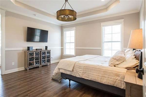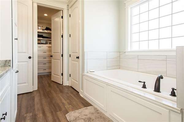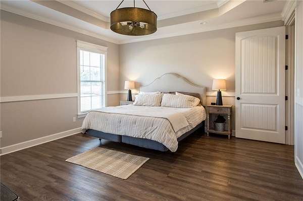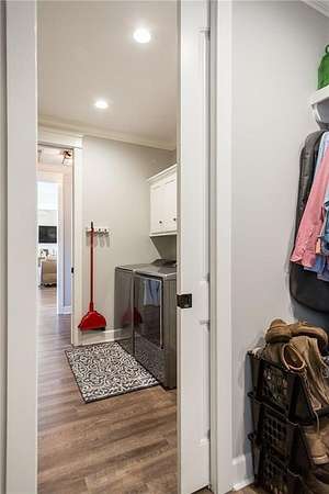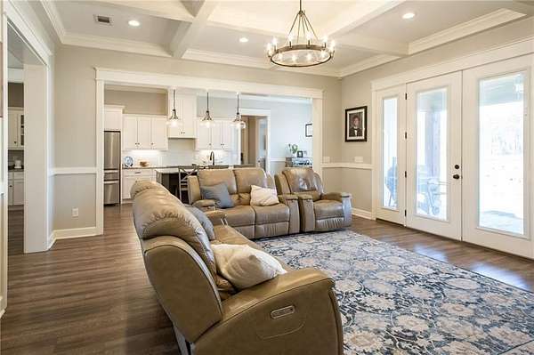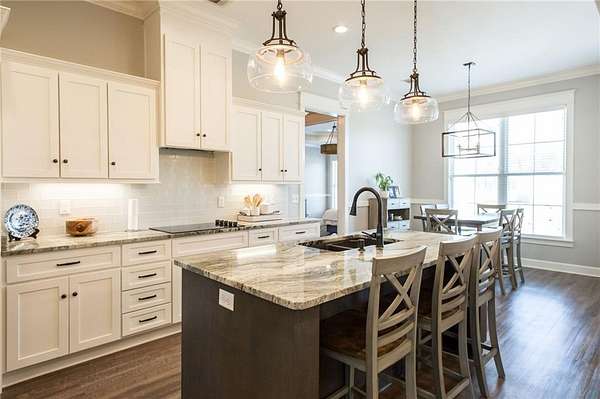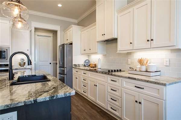 The open living and kitchen area features 10-foot ceilings, granite countertops, and custom cabinetry, creating a bright and welcoming central space. Durable LVP flooring runs throughout the home, and spray-foam insulation in the walls and ceilings adds year-round energy efficiency.