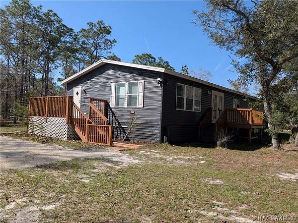 This beautiful 3 bedroom, 2 1/2 bathroom mobile home located in Green Acres on 1.89 acres in Homosassa offers a surprising amount of charm, comfort, and outdoor living space. Inside, the home has a bright and inviting interior with a split floor plan, bonus room, and indoor laundry, while outside you'll find porch space-great relaxing, entertaining, or simply enjoying the peaceful surroundings. The spacious yard provides endless possibilities-create a garden, add a pool, or simply enjoy the open space. The property includes a Detached garage, and multiple sheds for storage, hobbies, or transforming into the ultimate she-shed. The yard is partially fenced, providing privacy and flexibility for pets or outdoor activities. The also has RV hookup, (electric, septic and water ) with a separate driveway for the family that comes to visit but wants there own space. Located just minutes from Homosassa Springs and a short drive to Crystal River, this home offers easy access to some of the area's best natural attractions, waterfront activities, and local conveniences along with easy access to the Suncoast Parkway, making trips to Tampa International Airport quick and stress-free. Roof installed 2014, AC installed 2025. It's a unique opportunity to enjoy a move-in-ready retreat in a highly desirable Florida setting. If you're looking for a home with versatility and room to grow, this property checks all the boxes! Schedule your showing today, this opportunity to make this home won't last long!