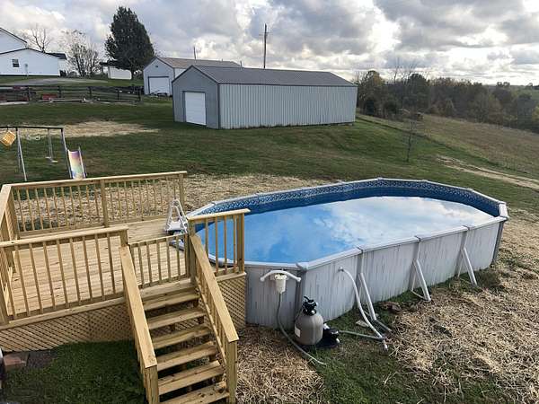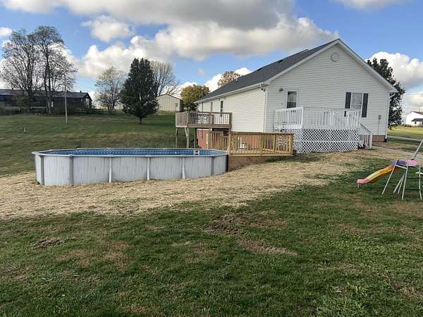 Take a look at this beautiful 1 owner home located at 7295 Energy rd Ewing Ky. 41039 Nicely situated on approximately 27 Acres +or-. Approximately 3400 square feet including a finished walk out basement with insulation barrier. 3 bedrooms/3 full baths/dining room/master bedroom with master bath(dual walk in closets)mud room/2"X 6" Walls with OSB on the outside and inside/Truss Floors to provide no supporting walls in the basement or main floor/rear deck with breath taking views/above ground pool with new deck/hardwood floors throughout the home/solid wood doors/multiple walk in closets/large family-game room/upstairs washer and dryer hookups with extra hookups in the basment. Improvements consist of a metal shop building (approximately 30x40) with auto garage door. This is the first time this home has been on the market since construction. Plenty of room for hunting/atv/horseback riding etc. located only minutes from the licking river and the wildlife area. This place has it all!! Pictures do not do this home justice!! Call Kevin for your showing today!!