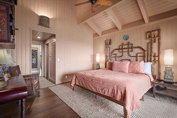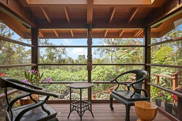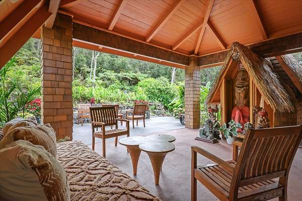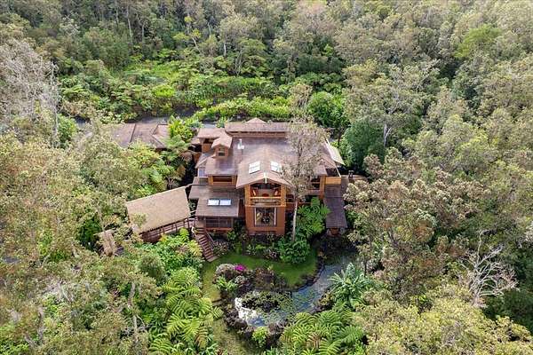 Estate property on 6.5 acres of rare cloud forest in Kailua Kona, Hawaii. Located at an elevation with cool evenings and mornings, the Kaloko Neighborhood is only 15-20 minutes to Kailua Kona Village, beaches, and airport. Enjoy your own private retreat, while just minutes from the necessities in town! Main residence of 3 bedrooms, 3 baths with vaulted, open beam ceilings and custom mahogany pocket doors to allow an easy flow of indoor to outdoor living and entertainment. Pan-Pacific influences of Hawaii, Fiji, Japan and Bali are all evident in this artist designed custom crafted, Estate home. Several large covered lanais with outdoor seating to relax and enjoy the tranquil cloud forest setting and inspiring sunset views. Custom kitchen features bamboo, copper, and leathered granite finishes and island bar seating. Unique lava rock fireplace creates cozy ambience in the cooler elevations of this forest home. Primary bedroom suite opens up to a wrap-around lanai, with a separate outdoor day bed and seating area. Primary bath suite with walk-in shower, free standing tub, and outdoor shower situated with privacy in mind. Two more bedrooms with their own baths and covered lanai, complete the upstairs portion of the home. The downstairs level with its own parking and private entrance, has 2 bedrooms, 1 bathroom, kitchenette, living room and screened in lanai. Access to this parking and private entrance is across a unique thatched roof covered bridge. The romantic "Treehouse" cabin to the north of the home also has its own private entrance and driveway. This two-story cottage is complete with living room, bedroom, bathroom and kitchenette. Both the main home and treehouse cabin will be sold turn-key with furnishings and artwork curated worldwide specifically for this property. Extensive plantings, water features and ponds complete this magical oasis. Check out the matterport/virtual tour.