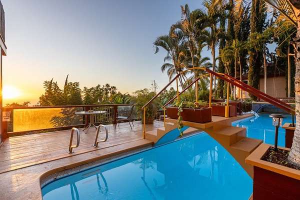 Experience a retreat in Kona's "Sweet Spot" (1200' elevation), where the climate is ideal and the land is abundant. This 3.19 acres sanctuary pairs privacy and convenience. A majestic banyan tree welcomes you to this park-like setting, with sweeping coastline and ocean views. The multi-level main home opens to an outdoor entertaining zone with a 42-foot salt-system lap pool, lounging grotto, and an ozonated spa. A large covered patio serves as a poolside entertaining area, with a full wet bar and generous counter space. Enjoy raised-bed gardens, shade houses, and an orchard with 30+ fruit varieties (per Seller, 200+ trees total), plus original murals and a lava cave. Multiple on-site buildings offer potential for storage or agricultural use. Property Features: - End-of-the-road setting with minimal through traffic - Prime location: 8 mins to Costco/Home Depot; 15 mins to airport & downtown - Approx. 2,743 sq ft total living area - Multi-level layout with separated living areas - Excellent rental potential - Covered patio "great room" with wet bar and storage - 42-foot salt-system lap pool with lounging grotto - Ozonated spa - Raised-bed gardens, shade houses, and orchard - Multiple on-site buildings - County water plus catchment for irrigation - Rooftop solar PV with transferable lease Important disclosure: this property has multiple active violations with both the County of Hawaii and State Department of Health. A large disclosure and documentation packet is available for review, but may not reflect all violations and material facts. Buyers to perform their own due diligence as to permitted land uses, status and allowed uses of structures, all wastewater requirements, and resolution of violations. Un-permitted improvements are present, and tax/permit records likely conflict with listing data.