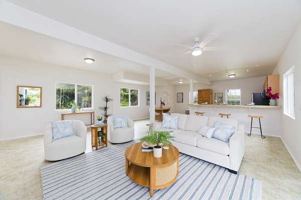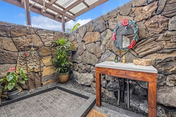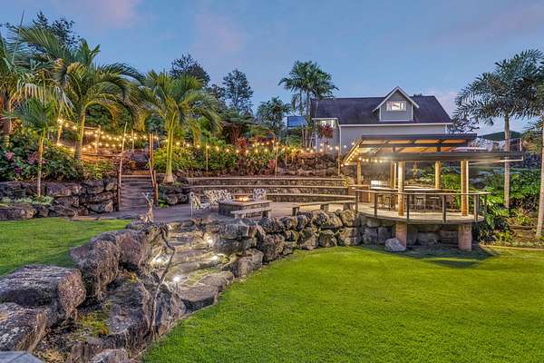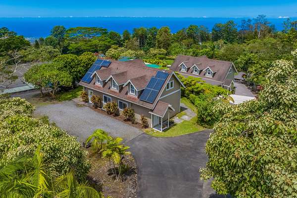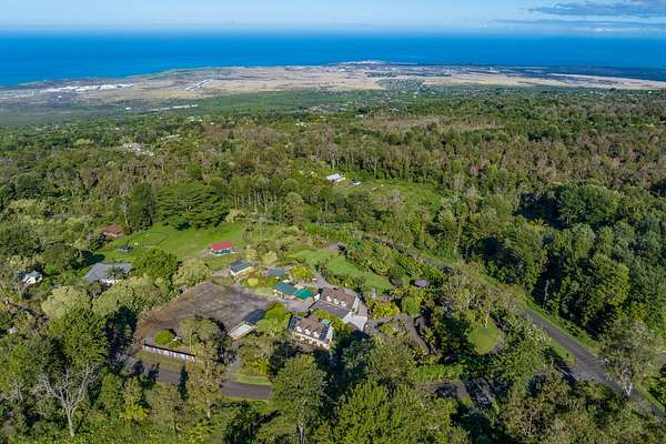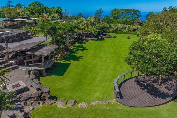 Nestled within the lush embrace of Kaloko, Pa'ina Place offers a serene escape on the slopes of Hualalai Mountain. Perched at a cool elevation of 2,300 feet, this unique property provides a refreshing contrast to the warmer coastal areas, all while being just 15 minutes from town, pristine beaches, gourmet restaurants, and an international airport. A nature lover's dream, Pa'ina Place is surrounded by a vibrant botanical garden teeming with a rich variety of flora and gardens. The property is adorned with citrus, banana, and avocado trees, along with other fruit-bearing and flowering trees, creating a colorful tapestry that delights the senses. The meticulously landscaped grounds offer open areas for peaceful strolls, with panoramic ocean views and magical sunsets that complete this tropical paradise. Pa'ina Place is more than a home; it's a sanctuary where you can truly connect with the beauty and tranquility of Hawaii. This property is ideal for either multigenerational living, remote workspaces, rental income, or wellness retreats. It's no wonder Pa'ina Place was chosen as a filming location for the luxurious Hawaiian setting of The Bachelorette Season 21. Here, the beauty and romance of Hawaii come to life, offering a truly enchanting experience. * Main House: 2 Bedroom / 1.5 Bath w/ outdoor shower * Guest House: 1 Bedroom / 1 Bath * Event Pavilion: A large, covered pavilion for hosting events, equipped with lighting and sound systems. * Bridal Suite: A modern suite for preparations, complete with bath & outdoor shower. * Guest Accommodations: On-site cottage for guests, fully equipped with BD/BA. * Restroom Building: 2 BA * Landscaped Gardens: Mature gardens with native plants, an attractive setting. * Outdoor Spaces: Multiple locations across the property suitable for various private event styles. * Parking: Ample parking available to support large private events.
