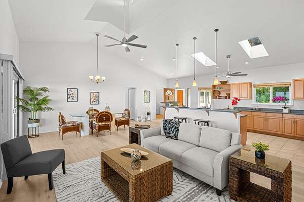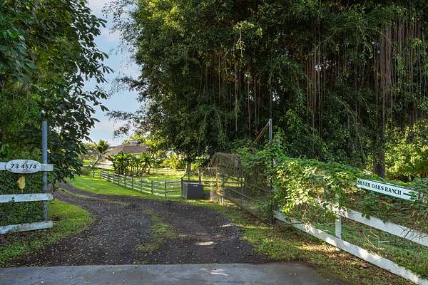 Country living in sunny Kaloko, with expansive coastal views over pasture. Turn off the highway down onto an alluring private lane into another world. 3.011 acres down below Mamalahoa - no HOA , no dues and no CC&Rs. This captivating home lies at the heart of the renowned Silver Oaks Ranch. The great room and two bedrooms all open out onto the full-length lanai. A 3rd bedroom has its own private deck oriented towards the morning sun. Easy access to single level living with vaulted ceilings, skylights and a cupola. There is a lockable enclosed area down below, and ample room for storage. 73-4574 MAMALAHOA HWY - see virtual tour: . Conveniently located within 15 minutes of Kailua Village and the airport. Off the beaten path, shown by appointment only, please don't try to drive by. There's never a dull moment when you have resident, frolicking sheep mowing your land. But when the alpha male looks up at you, you can be sure that he's thinking to himself: Goats to the left of me, horses to the right, and here I am stuck in the middle with ewes! This information herein, while deemed reliable, may contain inaccuracies and is provided without warranty or guaranty of any kind. Prospective purchasers and their Agents are urged to independently verify all information deemed material or important to their decision to purchase or offer price.