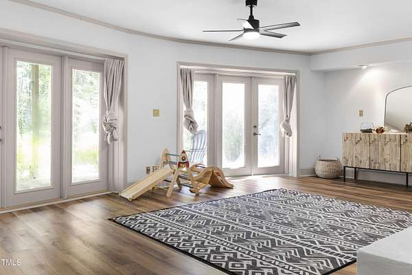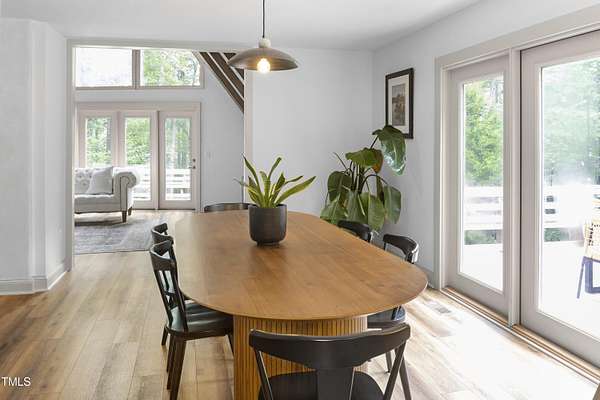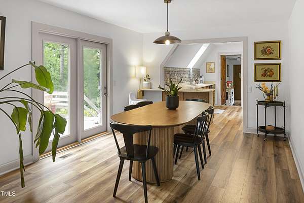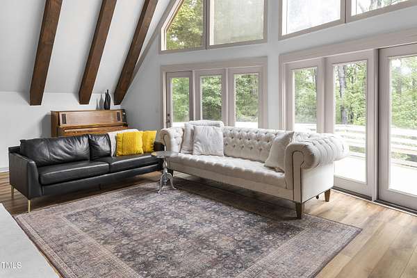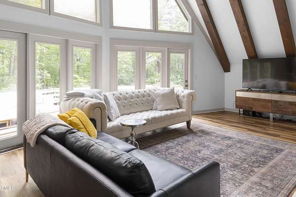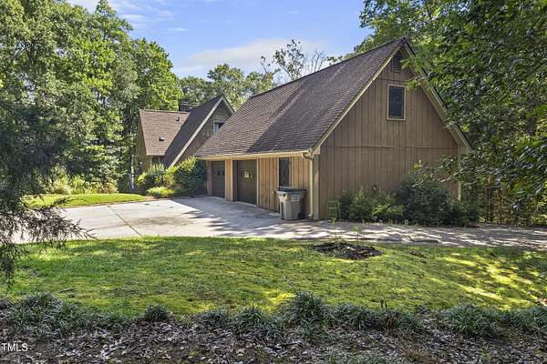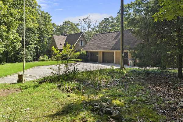 Modern updates meet timeless charm in this one-of-a-kind A-frame retreat. Nestled on 3.68 wooded acres in Lee County, this striking home offers the perfect blend of architectural character and modern style with fresh paint and new flooring throughout. Tucked away down a long, private driveway, this home offers the seclusion you crave. The circular drive wraps around the back of the home, creating both convenience and a stunning approach for guests. Inside, you're greeted by soaring ceilings, large windows that flood the living room with natural light, and seamless indoor-outdoor living with a deck just off the main gathering space. The kitchen and dining area open to a second expansive deck ideal for hosting or unwinding in the peaceful sounds of nature. The main level includes a bedroom, and the upstairs features an additional bedroom with a dedicated office. Downstairs, you'll find a flexible space that can serve as a private owner's suite or be reimagined as a playroom, media room, or multi-use retreat. It opens to a cozy patio area perfect for quiet mornings or evening relaxation. An attached garage with a finished bonus room above offers even more options whether it's a game room, studio, or gym. If you're looking for privacy, character, and flexible space, this A-frame delivers. Schedule your showing today and experience the lifestyle that awaits.