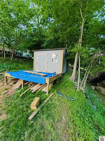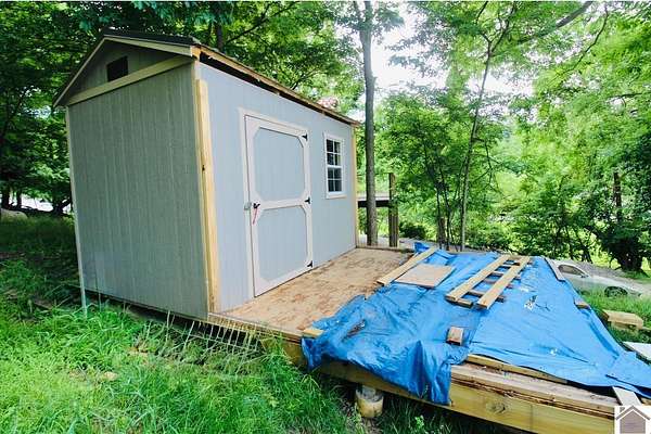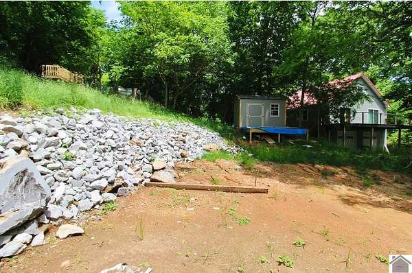 Discover an exceptional opportunity to build your dream home with year-round views of Lake Barkley! This cleared lot comes ready with a newly installed gravel driveway, rip rap, a convenient new 10x12 storage shed and a golf cart!!! Connecting to public water, sewer, & natural gas is a breeze, making your home-building process even smoother. Located just minutes from a public boat ramp, Mineral Mound Golf Course & Venture River Water Park, this lot is perfectly situated for all your recreational needs. Enjoy quick access to I-24 & the convenience of public shoreline access nearby. Immerse yourself in the beauty of lakeside living with breathtaking sunsets & abundant wildlife right at your doorstep. Time to embrace lake life on Lake Barkley!
