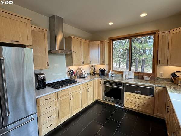 - Builtin Oven, Builtin Range, Cooktop, Dishwasher, Free Standing Refrigerator, Gas Appliances, Granite, Microwave, Pantry, Quartz, Range Hood, Solid Surface Countertop, Stainless Steel Appliance, Tile