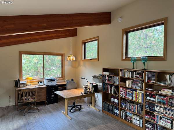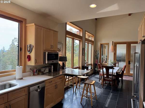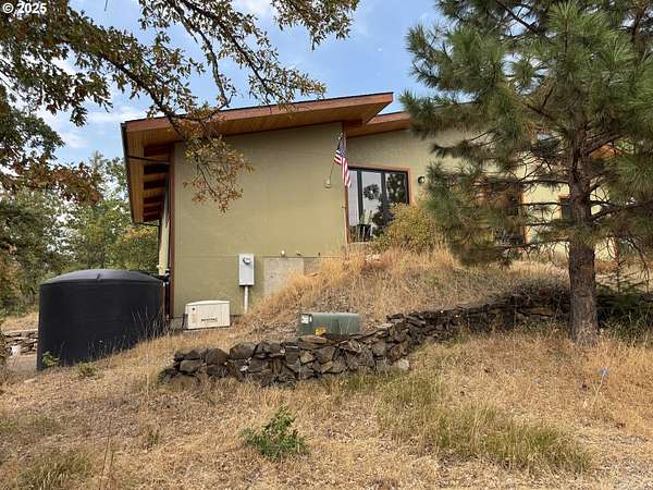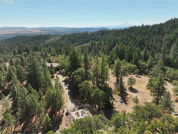 This private contemporary estate on 40 acres timbered acres awaits its next owner! Perched high above the Klickitat River near Klickitat, WA, this extraordinary property offers unmatched privacy, natural beauty, and refined finishes. Just 1.5 miles below and 10 minutes away, the Klickitat River, renowned as a world-class fishery for salmon and steelhead, flows through the canyon, while the estate itself is surrounded by oak, fir, and pine woodlands interspersed with open meadows. The property also borders 1963 additional acres of Columbia Land Trust land holdings on two sides. The home was designed with a sun room/flex room which separates the main living space and the guest quarters. 10-foot glass doors on the south and north and skylights provide natural light year around. Inside the main quarters, elegant details abound: granite and quartz countertops, solid fir doors with classic hardware, beamed ceilings, oak hardwood floors, heated bathroom floors, and on-demand hot water heating. An open-concept layout, southern exposure for passive solar warmth, and a double-sided fireplace serving both the great room and sun room/flex room create inviting living spaces, while a lofted office overlooks the great room. The oversized 2-car garage provides ample storage and workspace, and the heat pump ensures efficient heating and cooling year-round. Wahkiacus Creek bisects the parcel and roars with runoff in the spring - attracting deer, elk, turkeys, and countless birds. Additional features include 400-amp electrical service, two large cisterns for water storage, fencing with a gated entrance, and a garden area. With no CCRs or HOA restrictions, you'll have complete freedom to enjoy and shape the land as you wish. A rare offering that combines craftsmanship, sustainable features, and Pacific Northwest beauty - this private retreat, built by Daryl Woodruff, perfectly balances comfort, seclusion, and a true connection to nature. Call now for a showing!
