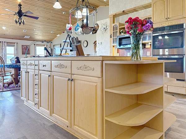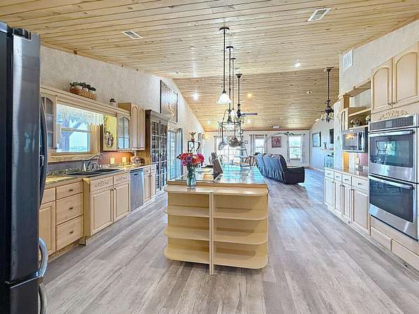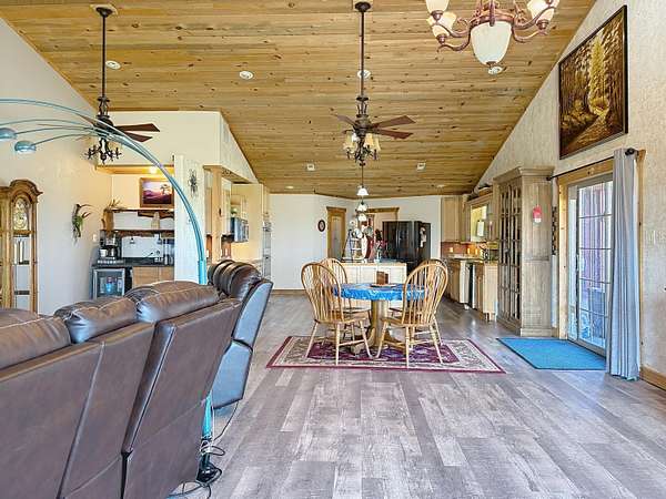 Welcome to multigenerational Living at its BEST! This home 6 bedroom/6bath home gives the option of single family living as well, but with the rising numbers for this type of living, this is a great opportunity for you and your family!! This large home with detached garage (including an apartment) and a huge shop (40x60) with a greenhouse is sprawled out on over 2 1/2 acres and offers fantastic views in all directions! The home includes newer flooring throughout, updated exterior paint, tile in walk in shower, new HVAC System including heat pump and new ducting. The patio doors are newer, they add to the feel of the already open and airy space! There is a spacious in-law suite that includes 2 bedrooms (1 in the upper bonus space with access to the exterior private deck) a huge bath with a double vanity and laundry included and a newer full kitchen. This can be accessed from a separate entrance. This could easily be changed and added back to open up to a single family home by removing the added wall. The open main living area has a large chefs kitchen which includes a huge island and a separate coffee bar. The vaulted tongue and groove ceilings that are blue pine and rare beetle kill pine are just a few of the very unique and custom touches add to the quality of this home! There is a huge primary suite with an amazing bathroom with toilet and vanity areas that are separated by a connecting walk in tile shower and tub area. The detached 2+ garage has living space above that includes 2 bedrooms, a 3/4 bath, and a large great room with a full kitchen. Great additional living area for family as well! The brand new shop has large wide and tall doors for your RV storage, trucks or heavy equipment, there is also a separate transformer box that is just for the shop so you do not overuse the home electricity. Start your produce early for your garden area in your 200 sq ft greenhouse! This property truly seems to cater to diverse living arrangements and offers ample space for hobbies or business ventures! Call for your personal tour of this AMAZING property! The updating lighting and improvements are all going on still!