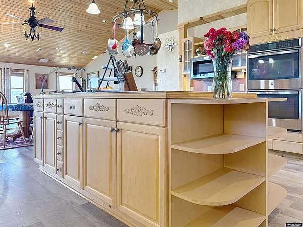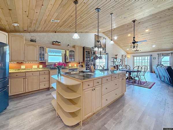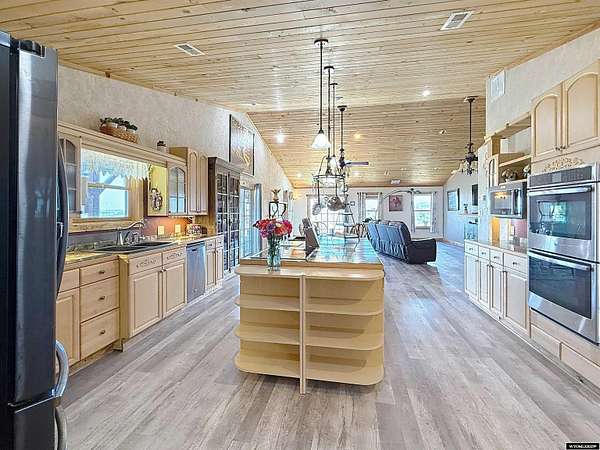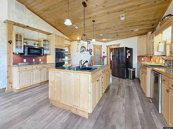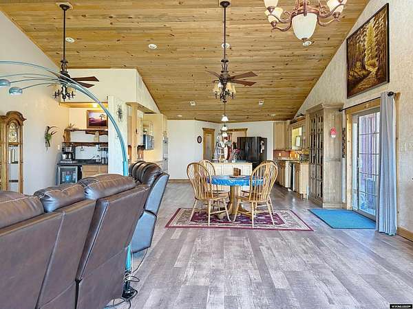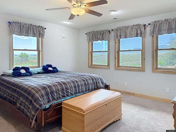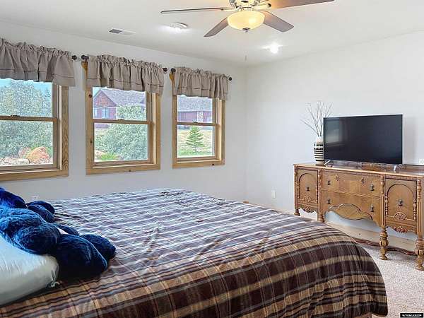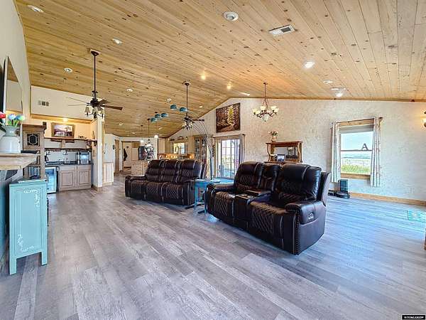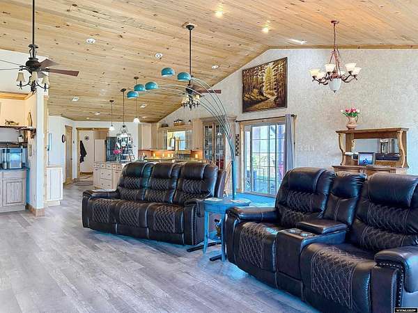 Welcome to multigenerational Living at its BEST! This home 6 bedroom/6bath home gives the option of single family living as well, but with the rising numbers for this type of living, this is a great opportunity for you and your family!! This large home with detached garage (including an apartment) and a huge shop (40x60) with a greenhouse is sprawled out on over 2 1/2 acres and offers fantastic views in all directions! The home includes newer flooring throughout, updated exterior paint, tile in walk in shower, new HVAC System including heat pump and new ducting. The patio doors are newer, they add to the feel of the already open and airy space! There is a spacious in-law suite that includes 2 bedrooms (1 in the upper bonus space with access to the exterior private deck) a huge bath with a double vanity and laundry included and a newer full kitchen. This can be accessed from a separate entrance. This could easily be changed and added back to open up to a single family home by removing the added wall. The open main living area has a large chefs kitchen which includes a huge island and a separate coffee bar. The vaulted tongue and groove ceilings that are blue pine and rare beetle kill pine are just a few of the very unique and custom touches add to the quality of this home! There is a huge primary suite with an amazing bathroom with toilet and vanity areas that are separated by a connecting walk in tile shower and tub area. The detached 2+ garage has living space above that includes 2 bedrooms, a 3/4 bath, and a large great room with a full kitchen. Great additional living area for family as well! The brand new shop has large wide and tall doors for your RV storage, trucks or heavy equipment, there is also a separate transformer box that is just for the shop so you do not overuse the home electricity. Start your produce early for your garden area in your 200 sq ft greenhouse! This property truly seems to cater to diverse living arrangements and offers ample space for hobbies or business ventures! Call for your personal tour of this AMAZING property! The updating lighting and improvements are all going on still!