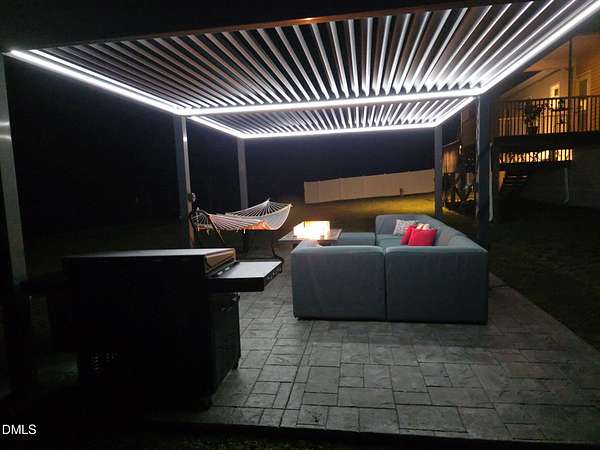 Spend your time fishing the pond in your back yard because there's nothing left to do-just move in and enjoy! This gorgeous 3-bedroom, 2-bath, well-built home is only 2 years old and nestled in a peaceful location at the end of a quiet cul-de-sac. Situated on nearly 2 acres with an unobstructed view of a tranquil pond-perfect for fishing right from your backyard. The open floor plan features all bedrooms on the main level, including a spacious primary suite with a huge walk-in closet. Outdoor living is a dream with a welcoming front porch, screened-in porch, large back deck, and a fenced yard that showcases the stunning water view. Under the 4-season pergola with integrated lighting and an automatic roof, you'll find a spacious 19.6' x 14.6' stamped concrete patio-ideal for entertaining or relaxing by the pond. All the extras have already been done for you, including solar panels with monthly energy credits from Duke Energy. Plus, enjoy gutter guards, permanent holiday trim lighting, and thoughtful landscaping. This home is a rare gem-modern, serene, and packed with premium features in a truly special setting. Come experience pondside living at its finest!