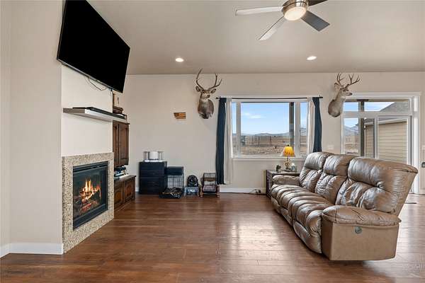 Nestled on 4.06 acres, this expansive single-level home boasts 3 bedrooms and 2.5 bathrooms, spanning 2,016 sq ft. Enjoy breathtaking views of Canyon Ferry Lake from large picture windows that showcase the majestic Elkhorn and Big Belt mountains. Step onto a beautiful porch that extends the living space outdoors, perfect for soaking in the serene surroundings. Inside, the living areas are bathed in natural light, creating warm and inviting spaces for relaxation or entertainment. The heart of the home is the spacious great room, complete with a cozy gas fireplace, ideal for gatherings and leisurely evenings. Retreat to the luxurious master suite, featuring a lavish soaker tub, a generous closet, and convenient access to the laundry room. Prepare to fall in love with this home at first sight.
