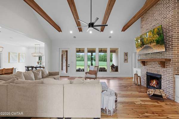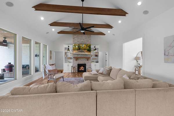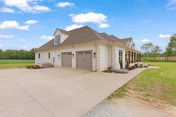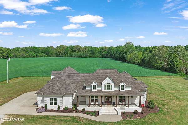 Beautiful newer construction on 3 acres in Gibson County! Choose from Trenton schools or South Gibson Schools due to this being a border road for school districts. Built in 2021, this impressive 3,156 sq ft home offers the perfect blend of modern design, space, and privacy. Featuring 5 bedrooms, 3 full baths, 2 half baths, and a dedicated office, this thoughtfully designed layout delivers both functionality and style with an open-concept feel ideal for today's living. The kitchen and living areas are perfect for entertaining, showcasing many upgrades throughout, quality finishes, real hardwood floors, a fireplace, and a stunning 16-foot ceiling in the living room that creates a bright, open space filled with natural light. Enjoy the peace and privacy of country living with approximately 3 acres of level land, offering endless possibilities for outdoor living, recreation, or future additions. Covered front and back porches provide the perfect setting to relax and take in the surroundings. This move-in ready home combines newer construction, space, and upgrades in a hard-to-find setting-making it a standout opportunity in today's market. Schedule your private showing today! Call Brad Lindsey