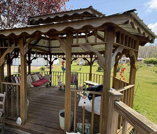 Sprawling ranch on 1 1/2 acres has something for everyone, from the gardener to the hobbyist to the host or business person. Home features 3 bedrooms and 2 baths (1 with tub/shower, 1 with tiled walk-in shower). Country kitchen with breakfast bar opens to dining area, all accented with a lovely tile floor. Cozy living room that opens out to the glassed front porch with a view of the countryside. Large, sunken family room with propane fireplace - great for entertaining, watching TV, game night and more. Outside is a grown-up's playground with a gorgeous gazebo & side deck for relaxing, tons of perennial flowers, kennel for dogs or other small animals, plenty of space for gardening (and yes, lots of room for the kiddos to play as well); 750 square ft guest house (open floor plan, 1 1/2 bath, kitchenette area, propane heat, window a/c) for hosting friends & family or perhaps rental income; and a super nice 30 x 50 ft garage with concrete floors, 3 overhead doors (w/ openers), large work area in back, & loft storage---so much space for hobbies, crafting or maybe even a home business. High speed (fiber optic broadband) internet available. Only 30 minutes from London/ I-75. If you are looking for more than just an average home, this versatile property is the one for you!
