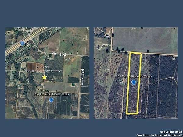 Motivated Seller - SEND OFFER - Texas UNRESTRICTED - MULTIUSE land FOR SALE, just 30 minutes from vibrant San Antonio! This 10.03-acre parcel in Moore, TX is perfect whether you're seeking a weekend RV escape, a spot to build your dream home or a hunting haven. Accessible via FM 2779 and 462, and only 3 minutes from I-35, it boasts mature mesquite trees, dense Texas brush, and abundant wildlife. Make this versatile piece of Texas your own and explore its endless potential today! ** Subdividing the property