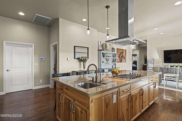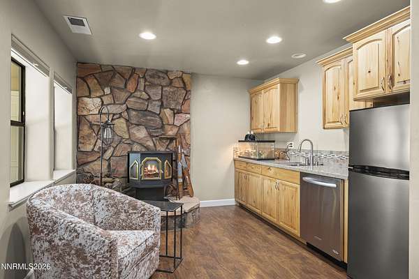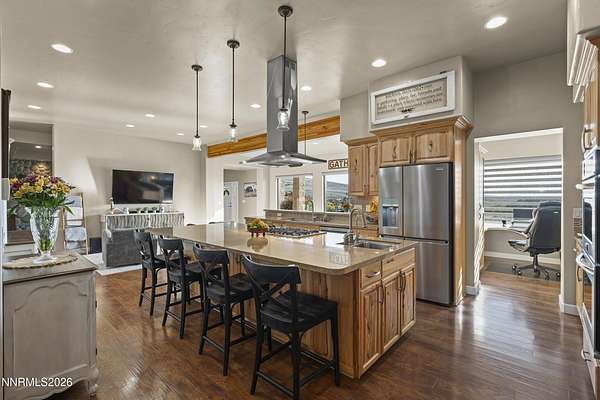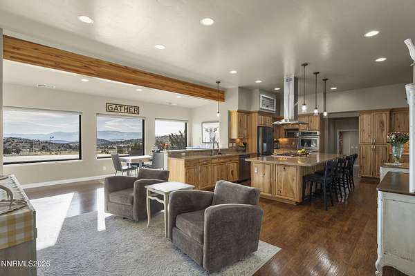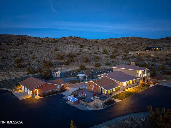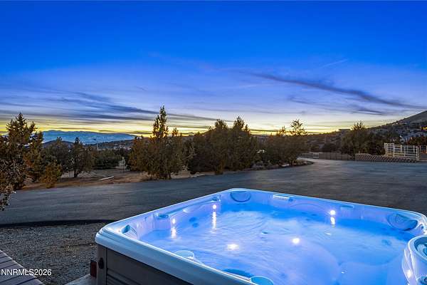 VIEWS, ACREAGE AND QUALITY!! Welcome to an exceptional 40-acre estate in scenic Spanish Springs where refined living meets fully-equipped ranch functionality. Thoughtfully and extensively upgraded since 2022, this impeccably maintained property offers effortless day-to-day living, expansive infrastructure, and breathtaking valley, mountain, city and sunset views that truly set it apart. The Custom Built Home has been beautifully improved with high-quality finishes and systems designed for comfort, efficiency, and longevity. Interior upgrades include new windows and blinds, French doors, a Navien tankless water heater, new flooring and carpet, custom storage solutions, modern lighting, and a fully reimagined primary suite with freestanding tub and spa-inspired details. (See Full Upgrades List in Documents) A dedicated in-law suite with separate entrance adds flexibility for multi-generational living or guests. Outside, the property has been carefully enhanced to support both lifestyle and land. A Generac whole-house backup generator with its own dedicated propane tank provides peace of mind, while upgraded well and pump systems, water storage, softening, filtration, and reverse-osmosis ensure dependable water service throughout the property. Extensive drainage improvements, retaining walls, and professional landscaping further reflect the level of care invested. Equestrian and ranch amenities are outstanding. Horses enjoy a 36' x 48' MD Master barn with five stalls, tack room, shop space, hay storage, automatic water systems, multiple fenced turnouts, and a leveled barrel-racing arena with lighting and dedicated water access. Bar-Bar-A automatic livestock drinkers, solar arena lighting, improved access roads, and gated entry complete a fully functional working ranch setup. Additional features include a newly paved and resealed asphalt driveway, electric entry gate, expanded storage solutions including vented containers, outdoor entertaining areas on the patio with a built-in BBQ and fireplace, and beautifully positioned vantage points to enjoy Nevada's legendary sunsets. With over $380,000 in documented improvements, no detail has been overlooked. This is a rare opportunity to own a turnkey ranch property offering privacy, views, modern systems, and timeless Western elegance - all within easy reach of Reno.