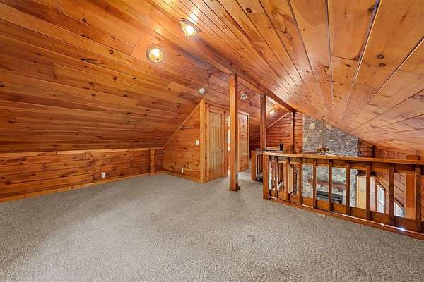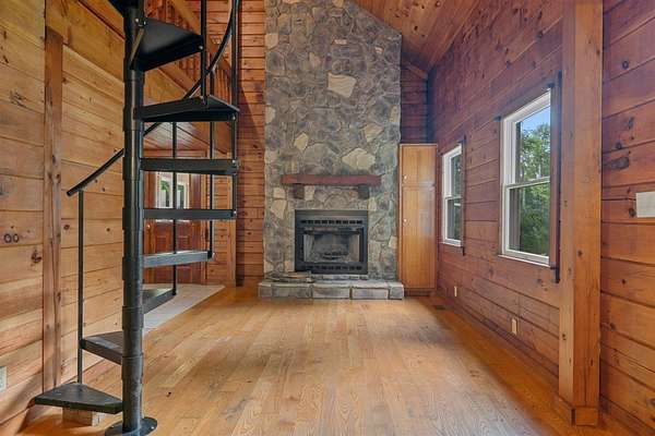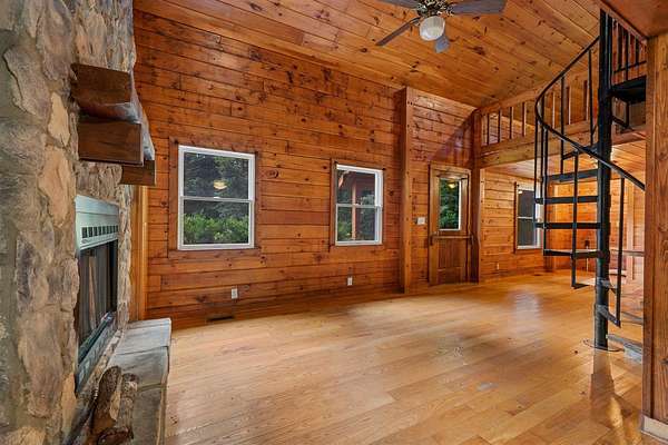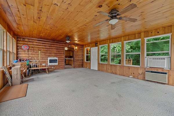 Discover your own private retreat on 11.4+- wooded acres with a pond and this stunning log cabin at 730 Hill Rd in Bowling Green. Tucked nearly a quarter mile off the road, this rustic home offers unmatched seclusion and charm. Inside, you'll find soaring vaulted ceilings, a gorgeous stone fireplace, a spacious sunroom, and a spiral staircase leading to a cozy loft. With 2 bathrooms main level bedroom and a large loft that could sleep multiple people, this cabin has the potential to be a full-time residence, weekend getaway, or short-term rental. A 20x20 shop with lean-to and a storage shed add functional space for hobbies or equipment. Whether you're seeking peace and quiet or a place to entertain, this unique property fits the bill. Seller is offering an allowance to the purchaser at closing, allowance can be used for closing costs or to be put towards updates as purchaser feels necessary.