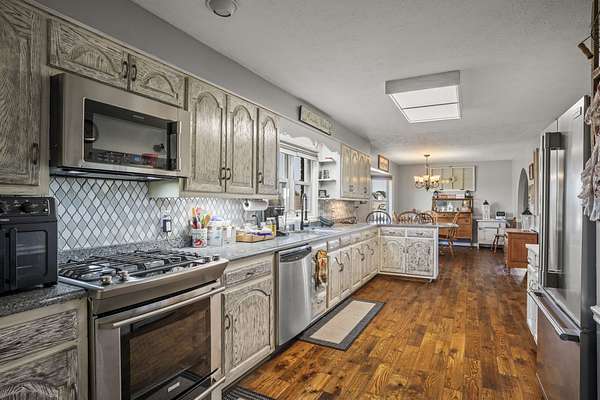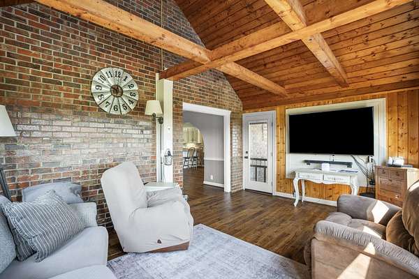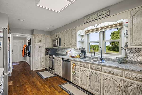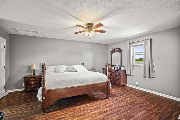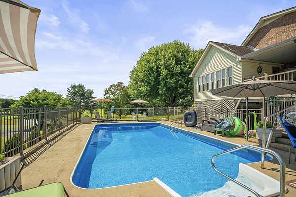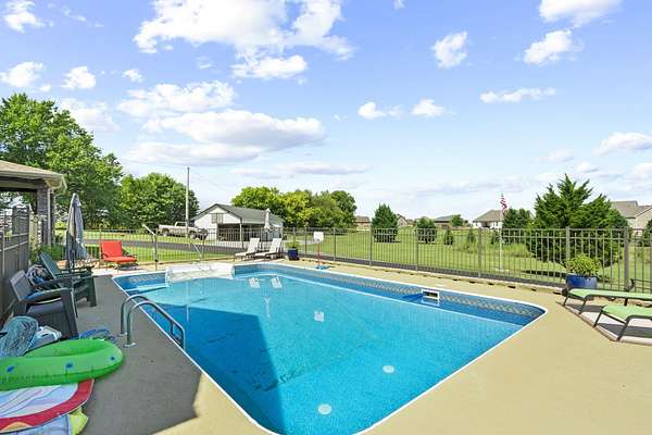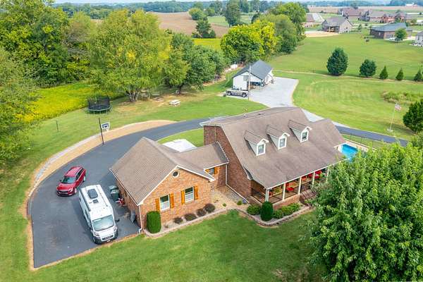 Beautiful 1 owner home on 5.31 acres/stocked pond. Features a heated/cooled basement w/bdrm, shop, and storage. The 2 car garage has a handicap lift. Updated custom cedar shutters, hardwood floors, & primary bath w/walk-in shower. The 2nd bathroom is remodeled. Home has a Mitsubishi Ductless heat & air system throughout home & central vacuum, with vac port toe kicks. Updated kitchen w/granite countertops, tiled backsplash, painted cabinets, gas stove & stainless appliances. Front porch has brick flooring & iron railing. Covered back deck w/composite decking, iron railings, ceiling fan, & LED lighting. Includes 24x60 barn w/water/electricity, 32x18 inground pool w/handicap lift and gas heated & a pool house w/an outdoor kitchen, storage room, & partial bathroom. The property has a blacktop driveway, basketball goal, firepit w/swing, & picnic table. An outdoor paradise! Must see to appreciate.