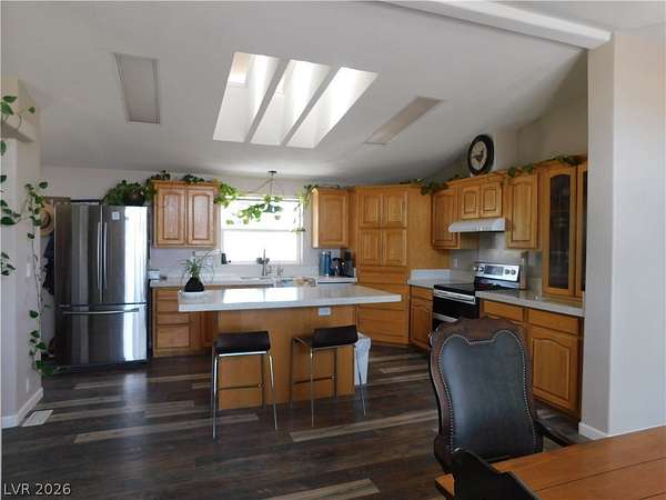 Est $2,334/moApple, Peach and fig trees adorn this horse zoned 3.99 acre parcel. Home is pristine and move in ready, the rv garage is almost 2000 sf by itself One side being pull through. Several carports conveniently located as well as EV charging hookup. Home has been meticulously updated with recent new solid surface countertops. Breezeway or den area is permitted and a great space with many options let your imagination run wild with all you can do here. Truly a must see and worth the drive. Roadway on the pass has been redone and widened.