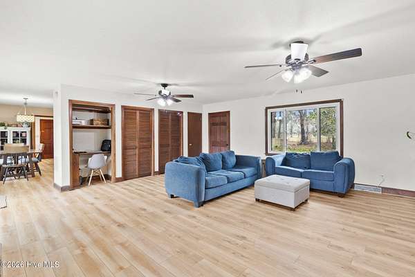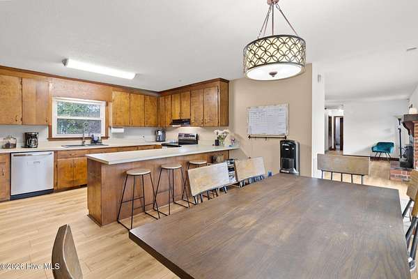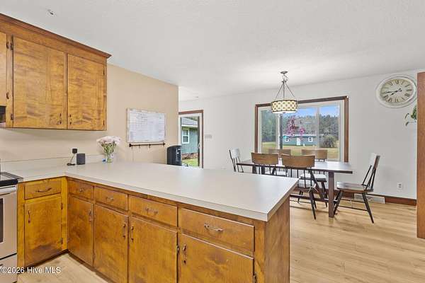 Situated on approximately 12 beautiful acres, this unique property offers space, versatility, and endless possibilities. The main home features 3 bedrooms and 2 bathrooms, thoughtfully arranged with all bedrooms located on one side of the home for privacy and convenience. A flex room with charming wooden built-ins provides the perfect space for a home office, library, or hobby room. Upon entry, you're welcomed into the living room anchored by a cozy wood-burning fireplace, creating a warm and inviting gathering space. The home flows into the kitchen featuring bar seating and an open connection to the dining area, making it ideal for everyday living and entertaining. Just off the kitchen is a spacious laundry room complete with a utility sink, offering additional functionality and storage. The true highlight of this property is the expansive land and additional building located on the property. This secondary structure includes stables along with a fully equipped living space featuring 2 bedrooms, 1 bathroom, and a full kitchen, creating an excellent opportunity for rental income, guest accommodations, or multi-generational living. With acreage, flexible living spaces, and income potential, this property offers a rare combination of privacy, functionality, and opportunity. Welcome Home! AGENTS-not a member of MLS? Call Showing Time for access/disclosures. Acreage determined using tax record, no survey is available, no septic records were available