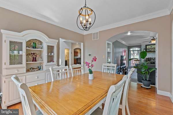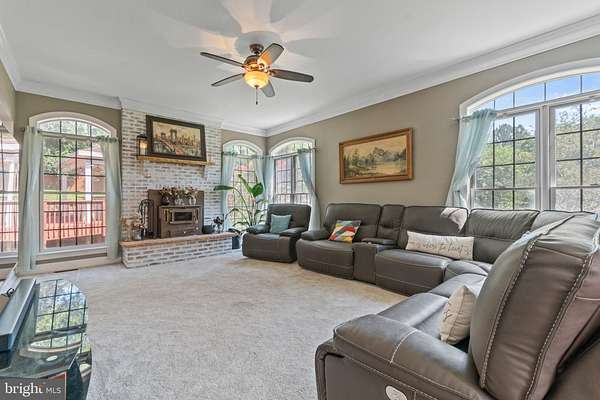 - Breakfast Area, Carpet, Ceiling Fan(s), Crown Moldings, Curved Staircase, Dining Area, Eat-In Kitchen, Family Room Off Kitchen, Formal/Separate Dining Room, Island Kitchen, Jetted Tub Bathroom, Primary Bath(s), Recessed Lighting, Soaking Tub Bathroom, Stall Shower Bathroom, Table Space Kitchen, Traditional Floor Plan, Tub Shower Bathroom, Upgraded Countertops, Walk-In Closet(s), Walk-In Shower Bathroom, Wood Floors, Wood Stove