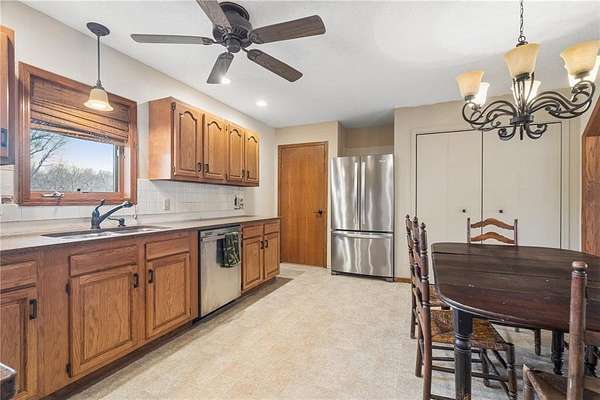 Rare opportunity with beautiful views on 4.5 wooded waterfront acres! This private retreat features a raised ranch home and a 24x45 shop, offering plenty of space and potential. Inside, you'll find 3 bedrooms, 3 baths, and a 3-seasons room overlooking the trees, wildlife, and water-creating a peaceful setting year-round. The home needs some love but offers a great opportunity to build equity and make it your own. The walkout lower level is ready to be finished to fit your needs. Enjoy the benefit of low county taxes while still being conveniently located on the NE side past Xavier, just minutes from shopping, schools, and Hwy 100. Sold as-is-schedule your showing today! This property is being sold as-is. Seller will review any and all offers 4/17 at 6pm. Seller reserves the right to accept any offers prior to deadline response time.