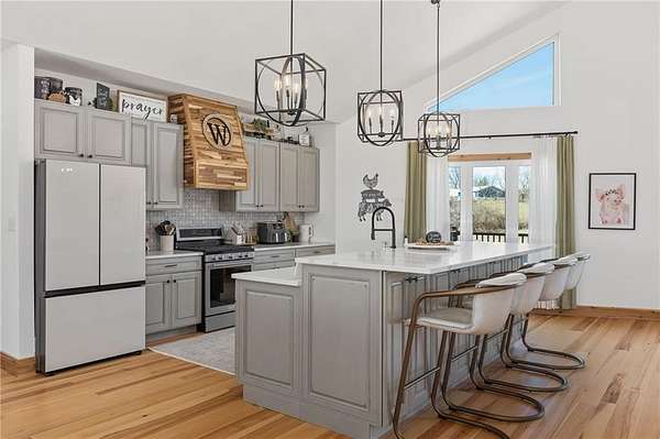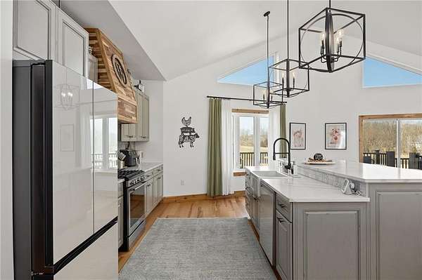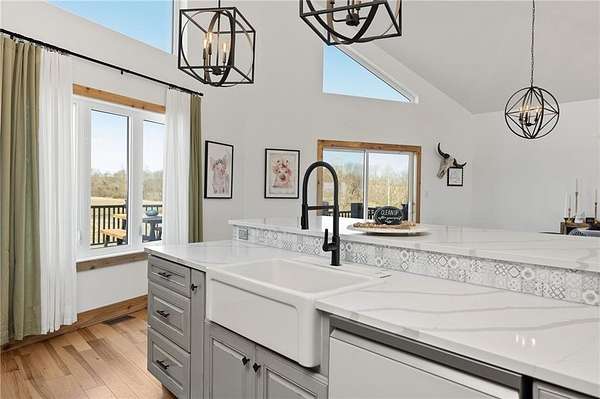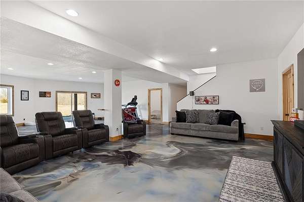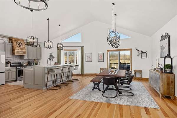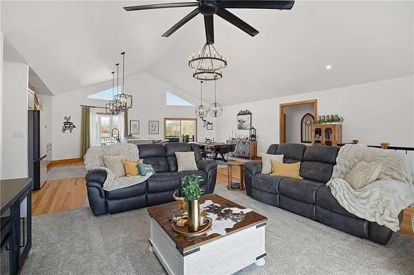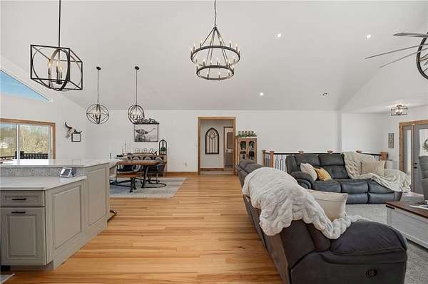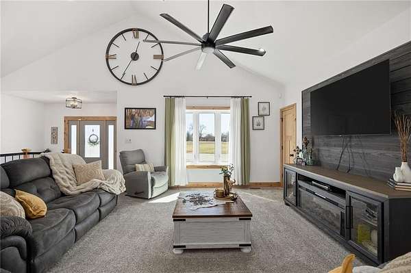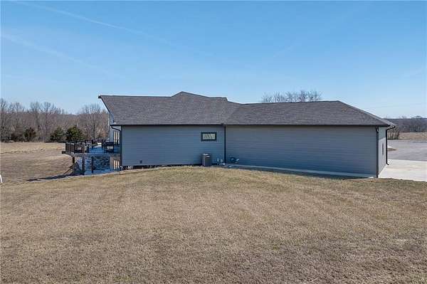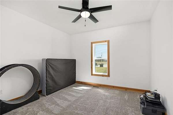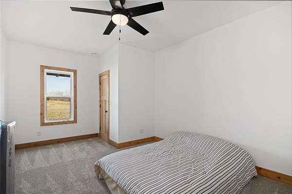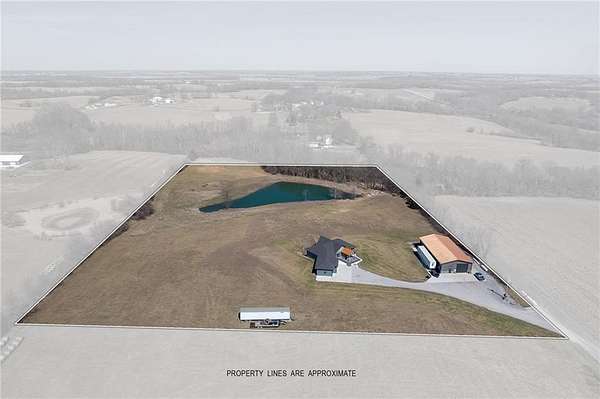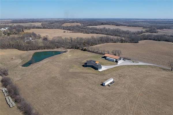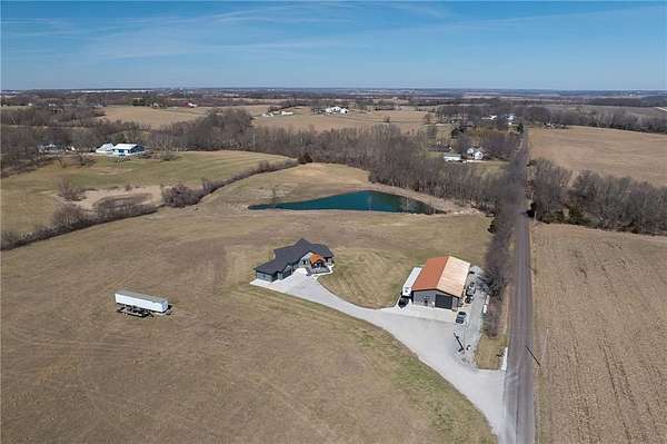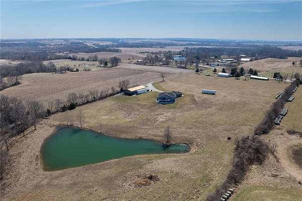 Experience the perfect blend of modern luxury, privacy, and functionality with this exceptional 2024-built ranch home set on nearly 10 scenic acres with a pond-a rare opportunity for those wanting space to live, work, and enjoy the outdoors without compromise. This thoughtfully designed 5-bedroom, 3-bathroom home offers true main-level living with an open, light-filled layout ideal for both everyday comfort and entertaining. The spacious kitchen features a walk-in pantry and flows seamlessly into the living and dining areas, then extends onto a large deck overlooking the property-perfect for morning coffee, sunset views, or hosting gatherings. The walk-out basement patio adds an additional outdoor living area and easy access to the surrounding acreage. The private primary suite is a standout retreat, highlighted by a spa-like primary bathroom designed for relaxation and comfort. Additional features include main-floor laundry, a large utility room, a dedicated exercise room, and an unfinished office or bonus storage space ready to be customized to fit your needs. An attached 3-car garage adds everyday convenience. The showstopper is the incredible 42*90 hydronic-heated shop, offering unmatched versatility with its own finished office space, full bathroom, laundry area, and expansive workspace-ideal for a home-based business, equipment storage, hobby space, or ultimate workshop setup. Enjoy peaceful pond views and wide-open acreage perfect for recreation, animals, or simply embracing the quiet beauty of country living-all while enjoying the benefits of nearly new construction.